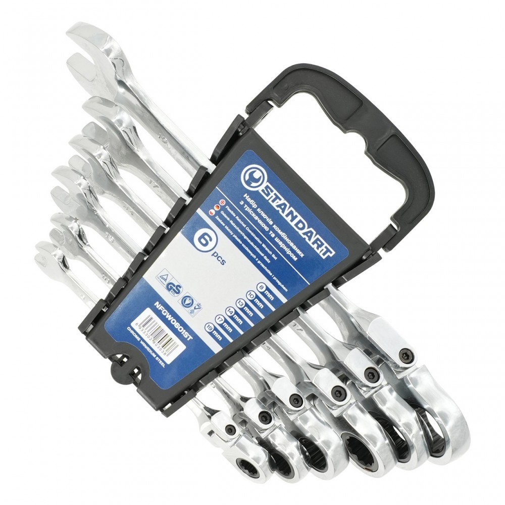 Набор ключей комбинированных с трещоткой и шарниром 8,10,13,14,17,19мм 6ед. на холдере СТАНДАРТ NFGW0601ST