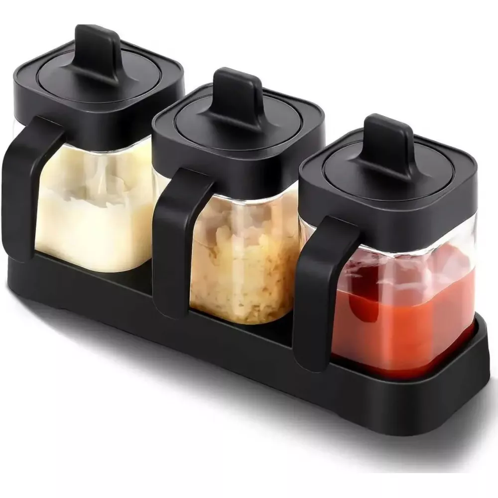 Комплект контейнеров "Seasoning bottle set" - отличное решение для хранения сахара, соли, специй и других сыпучих продуктов. В набор входит 3 контейнера с крышками, изготовленных из качественного пластика с оригинальным дизайном.