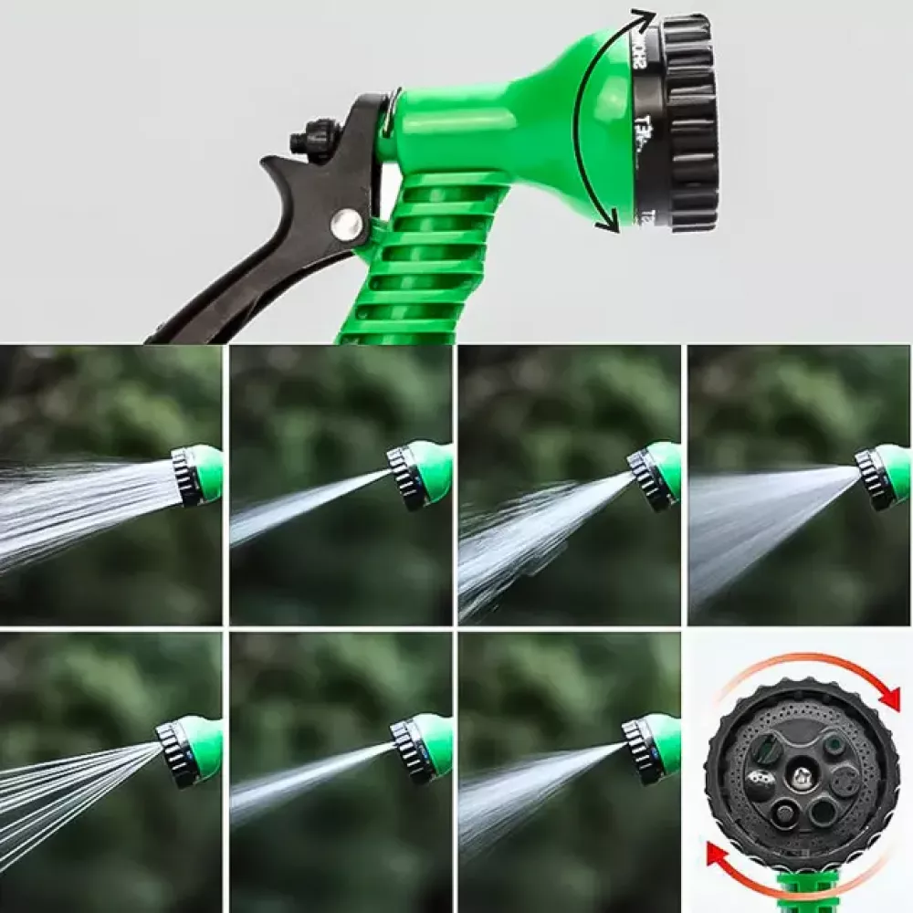 7 режимов распыления: Благодаря пистолету с распылителем этот набор предлагает вам семь различных режимов полива. От легкого опрыскивания до мощного напора – у вас всегда будет выбор, который подойдет для вашего сада.
