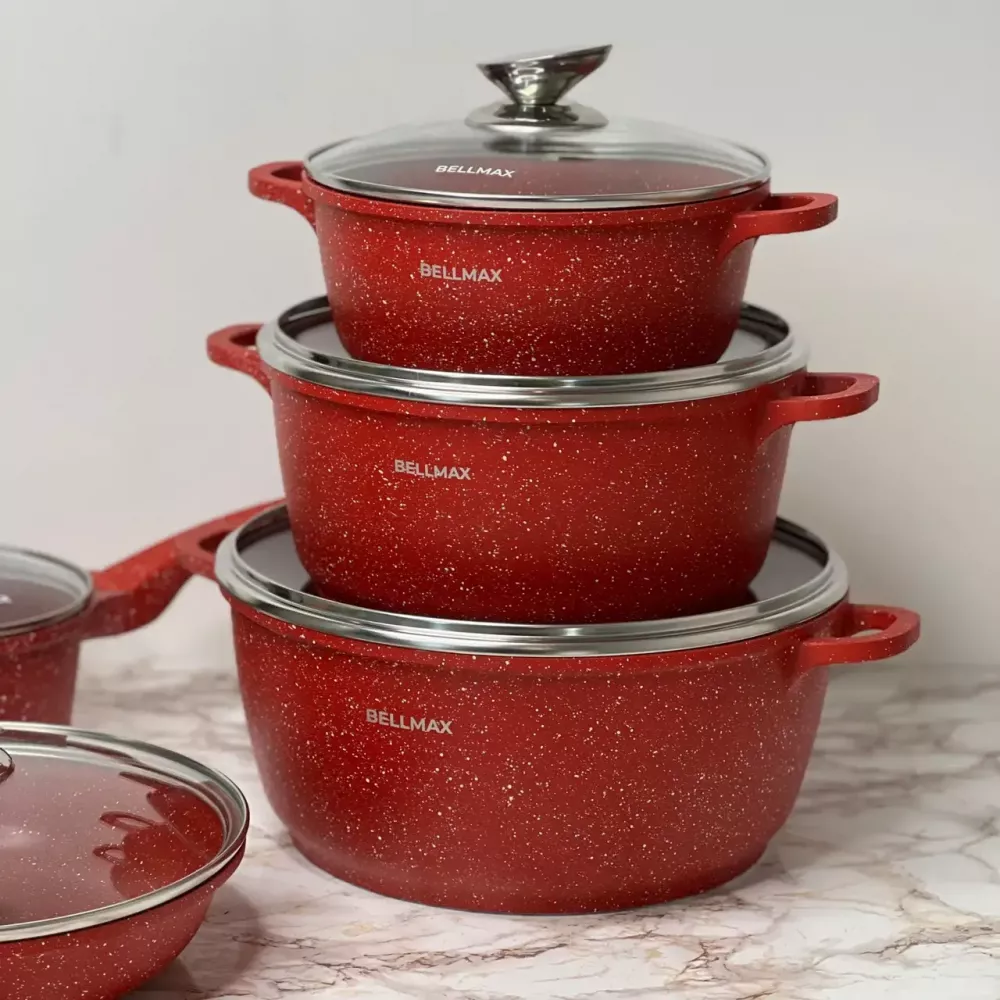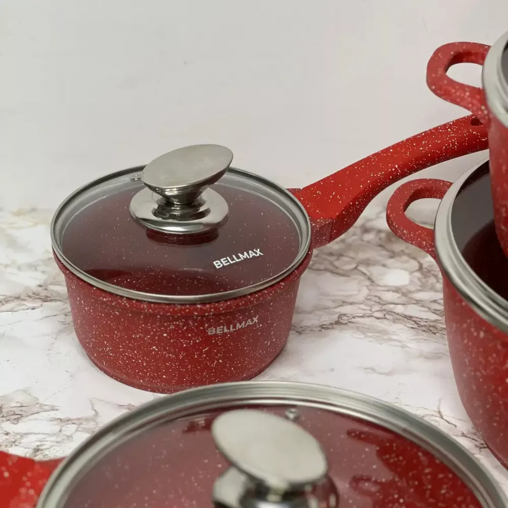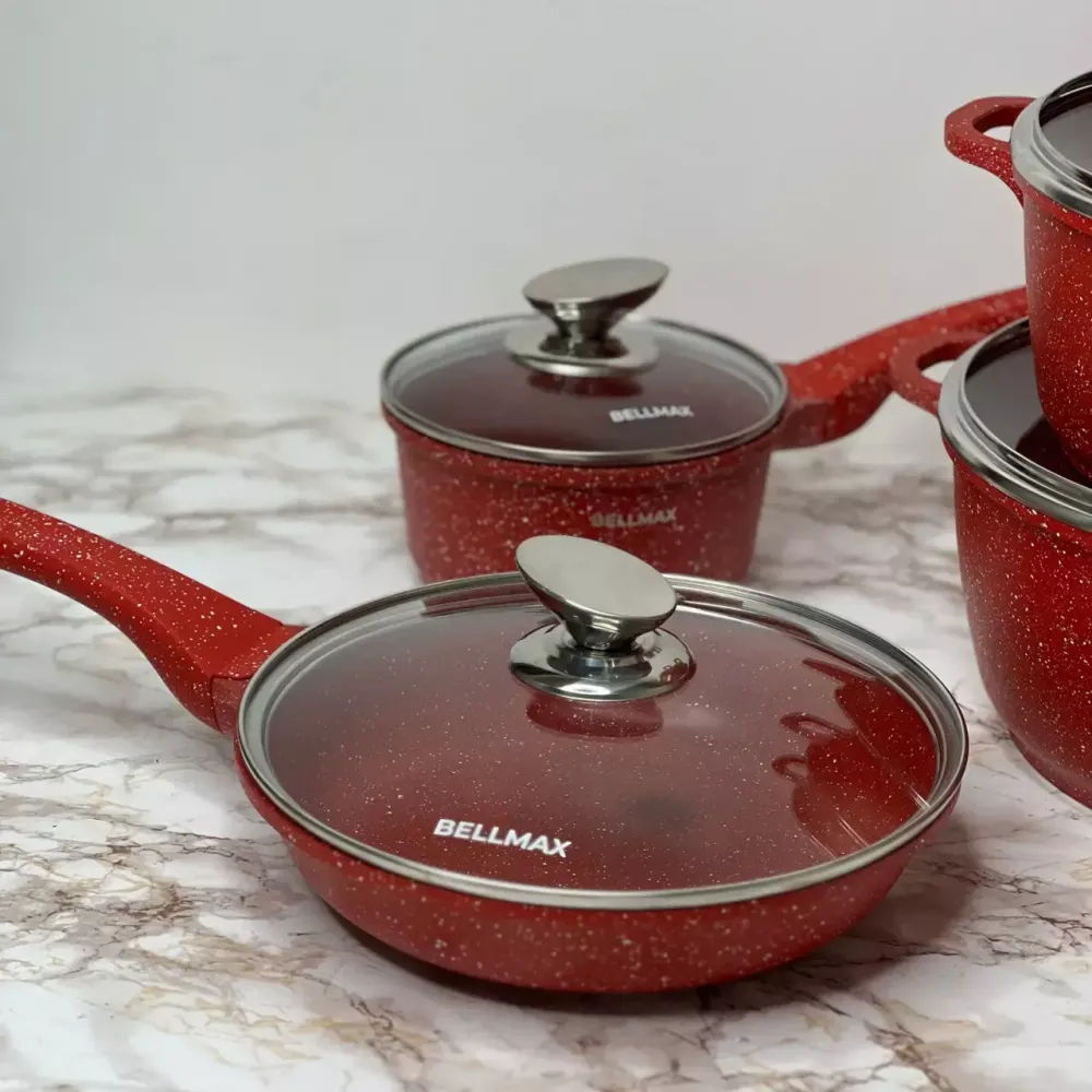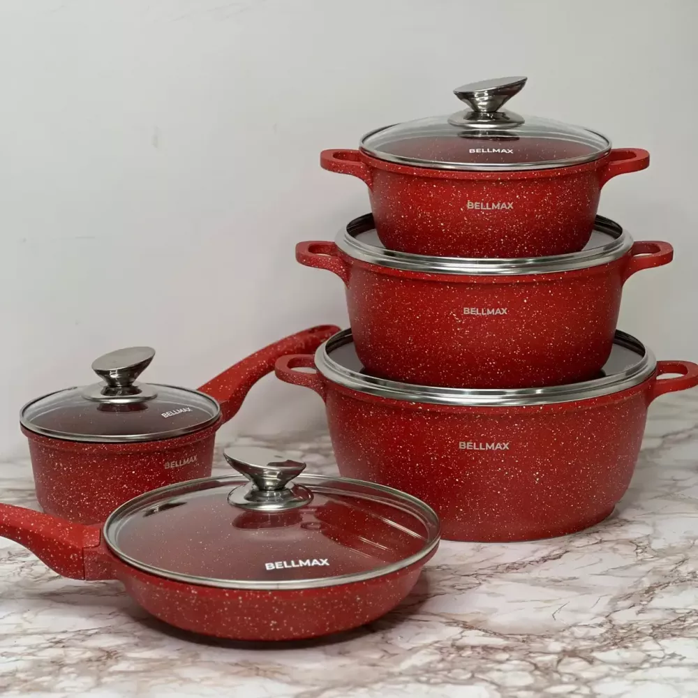 Набор посуды с гранитным антипригарным покрытием BellMax BM-305 из 10 предметов красный