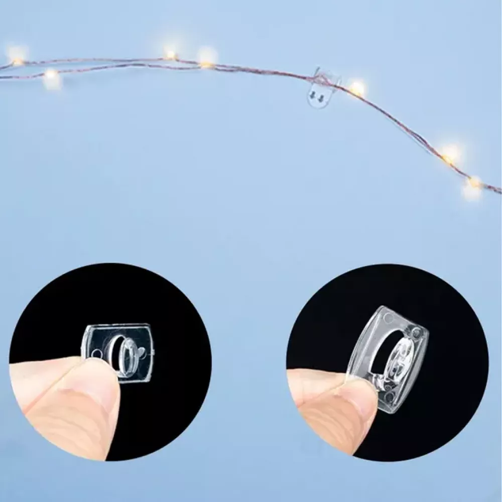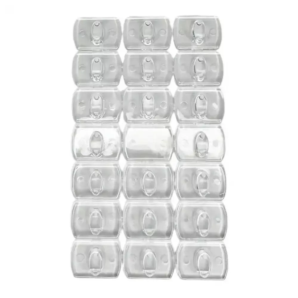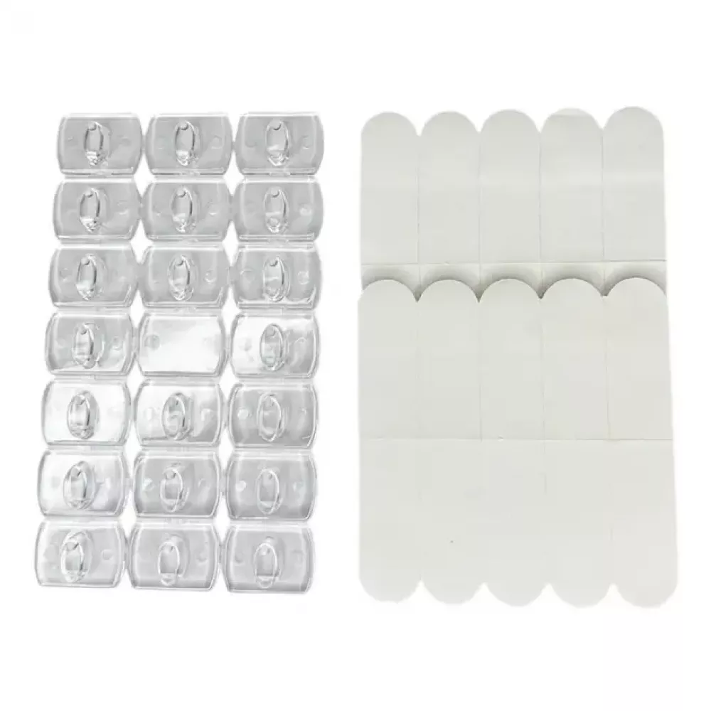 Набор из 20 крючков прозрачных самоклеящихся размером 1,3х1,8 см. Применяется для легкого, надежного и безопасного крепления гирлянд, проводов, декора на горизонтальных и вертикальных поверхностях. С помощью этого комплекта можно организовать пространство без использования инструментов и не повреждающих поверхностей.