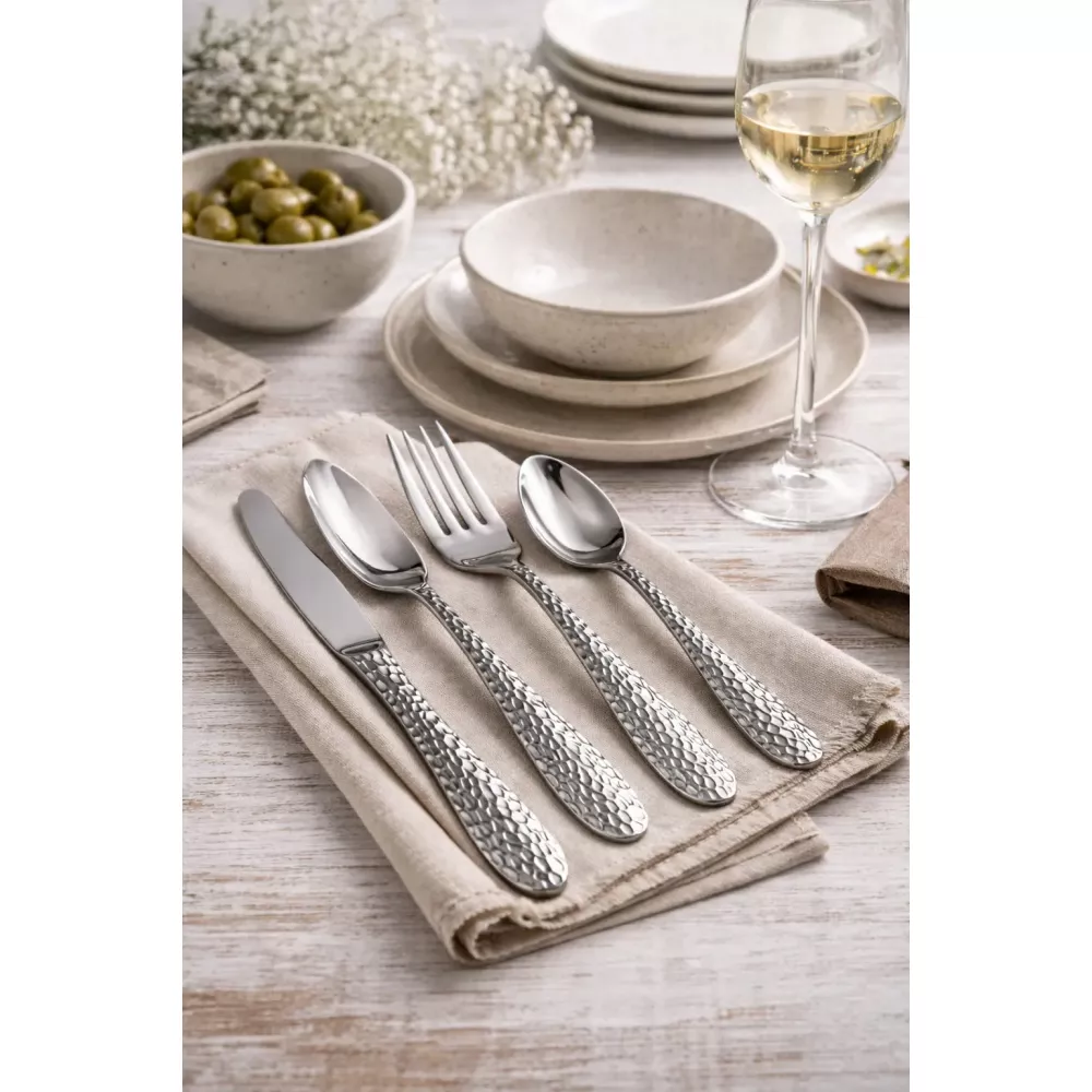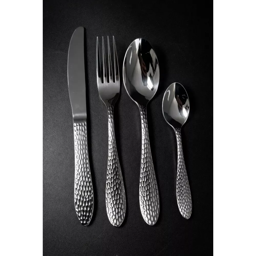 Столовые приборы 20-2 – это сочетание современного дизайна, элегантности и практичности. Оригинальная текстура на ручках не только привлекает внимание, но обеспечивает комфорт в использовании. Лаконичный металлический блеск гармонично дополняет как классическую, так и современную сервировку, придавая столу стильный и завершенный вид.