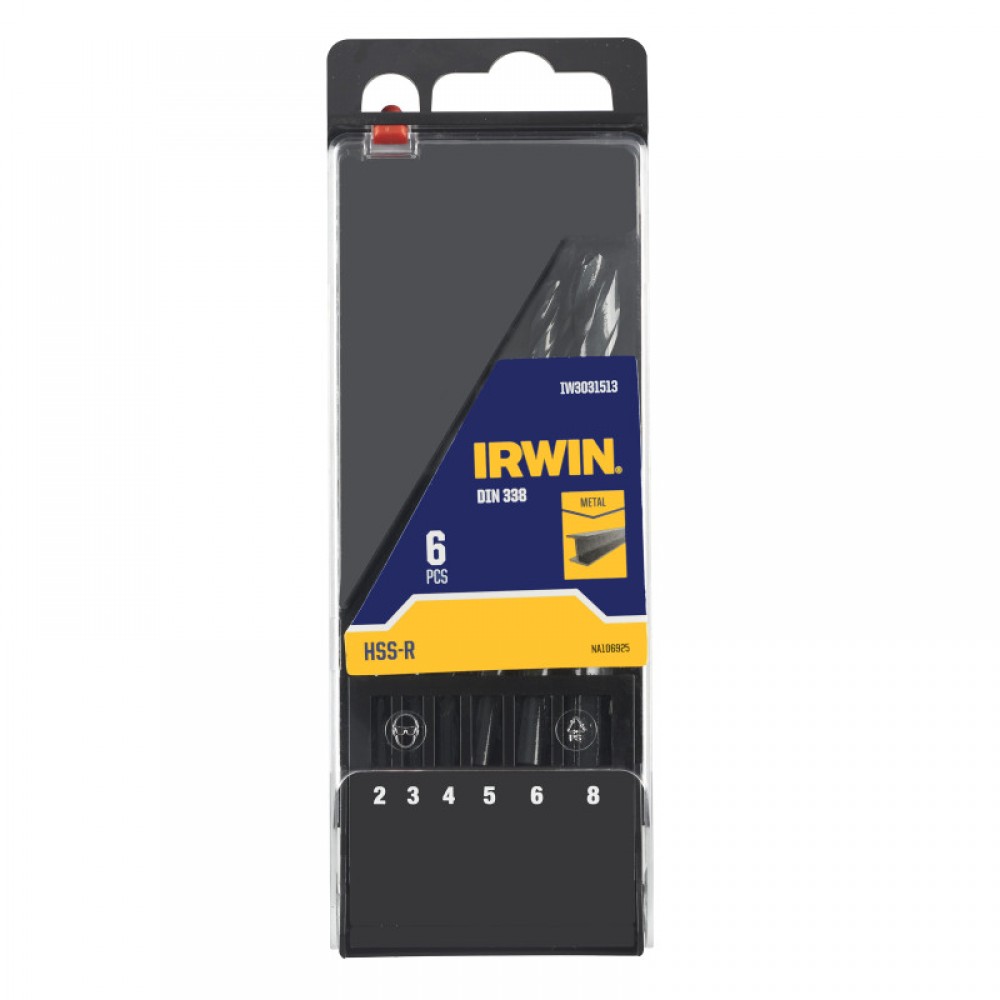 Набір свердел по металу IRWIN HSS PRO IW3031513 є стандартним набором з 6 свердлів по металу для свердління низьковуглецевої сталі та кольорових металів. Містить свердла наступних діаметрів: 2, 3, 4, 5, 6 та 8 мм. Свердла виготовлені з швидкорізальної сталі (HSS), а кут заточування вістря точно сформований до 118 °. Поставляється у прозорій касеті.