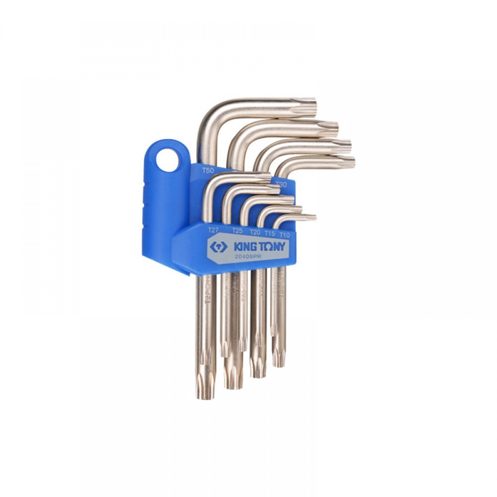 Набор поставляется в пластиковом кармане и дополнен удобным кольцом для подвешивания инструмента на стеллаж. В комплекте поставляется 9 типоразмеров Г-образных ключей: T10H, T15H, T20H, T25H, T27H, T30H, T40H, T45H,T50H.