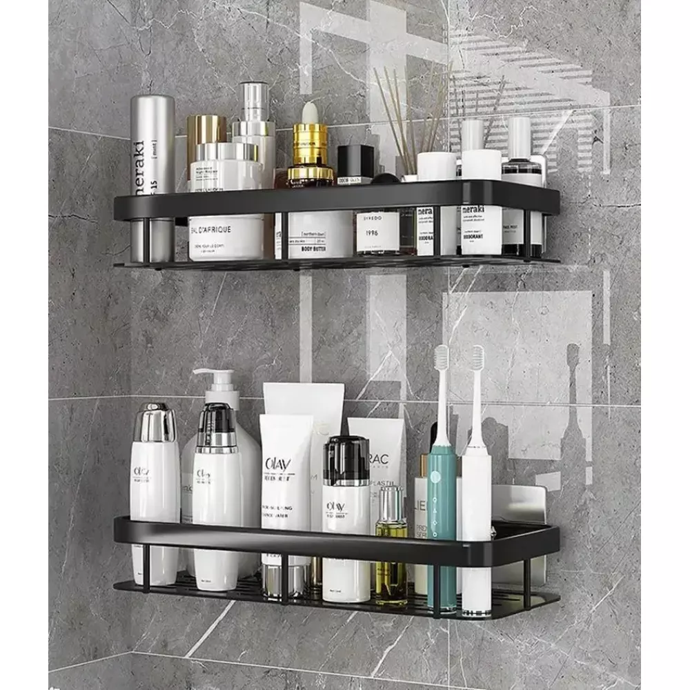 Настенная двухуровневая полка металлическая, самоклеящаяся для ванной комнаты, душевой.