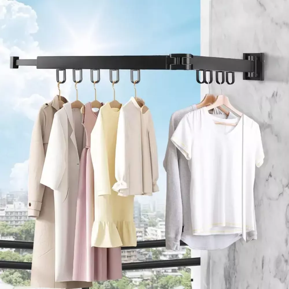 Регулируемая конструкция: Сушилка может быть сложена и развернута, что позволяет вам регулировать пространство по необходимости. Благодаря своей телескопической функции она может растягиваться, адаптируясь к количеству одежды, которую вы хотите повесить.