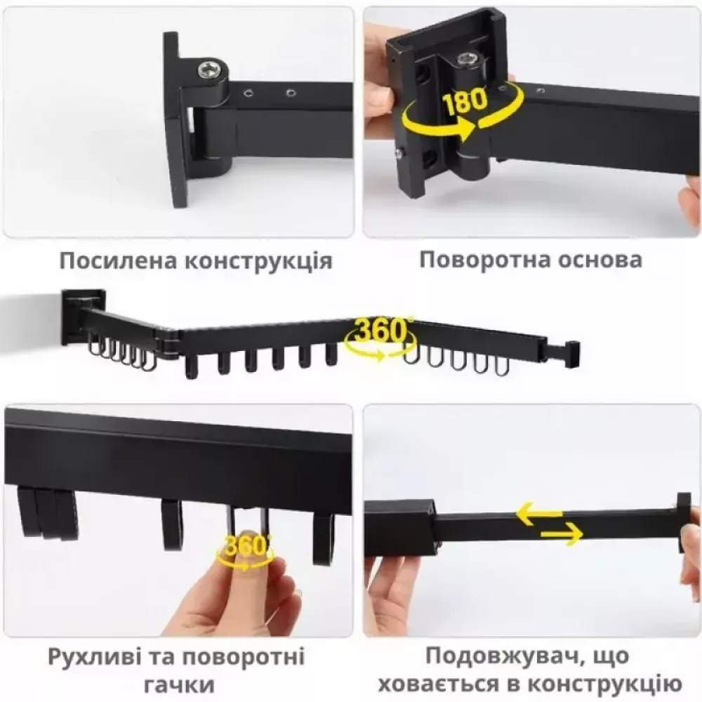 Универсальность применения: Сушилка подходит для сушки различной одежды, включая джинсы, рубашки, брюки, куртки, платья, футболки, полотенца и носки. Также она снабжена петлями для вешалок, которые могут вращаться на 360 градусов.