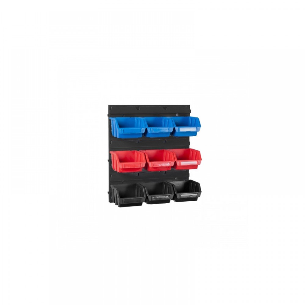 Щит для інструментів Fixing Wall 350 чорний, комплект лотків Ergobox: 3 шт. червоних, 3 шт. чорних, 3 шт. сині. 345 x 385 x 90