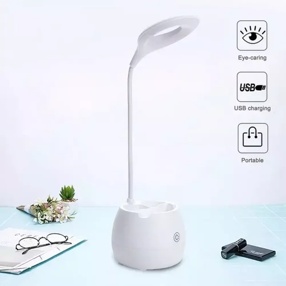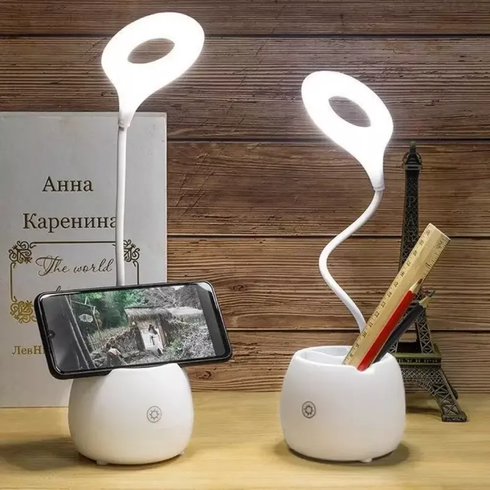 Модель подразумевает возможность работы как от встроенного аккумулятора, так и внешнего источника питания: от сети, ноутбука, повербанка. Поэтому смело берите ее с собой и включайте дома, в офисе или отдыхая на летней террасе на даче. Светодиодная лампа обеспечит яркое освещение в течение длительного времени. Теперь вам не придется загромождать стол пеналами, органайзерами или подставками. Лампа также может быть задействована в качестве подставки для мобильного телефона.