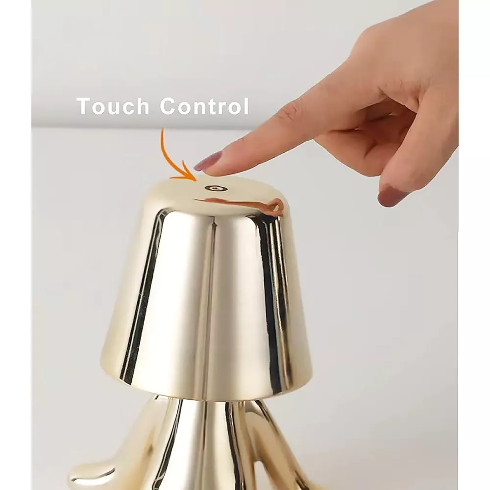 Лампа работает в трех режимах и может излучать свет высокой, средней и низкой яркости. Вы можете переключать их с помощью кнопки, расположенной в верхней части. Заряжается аккумуляторный светильник человечек с помощью USB