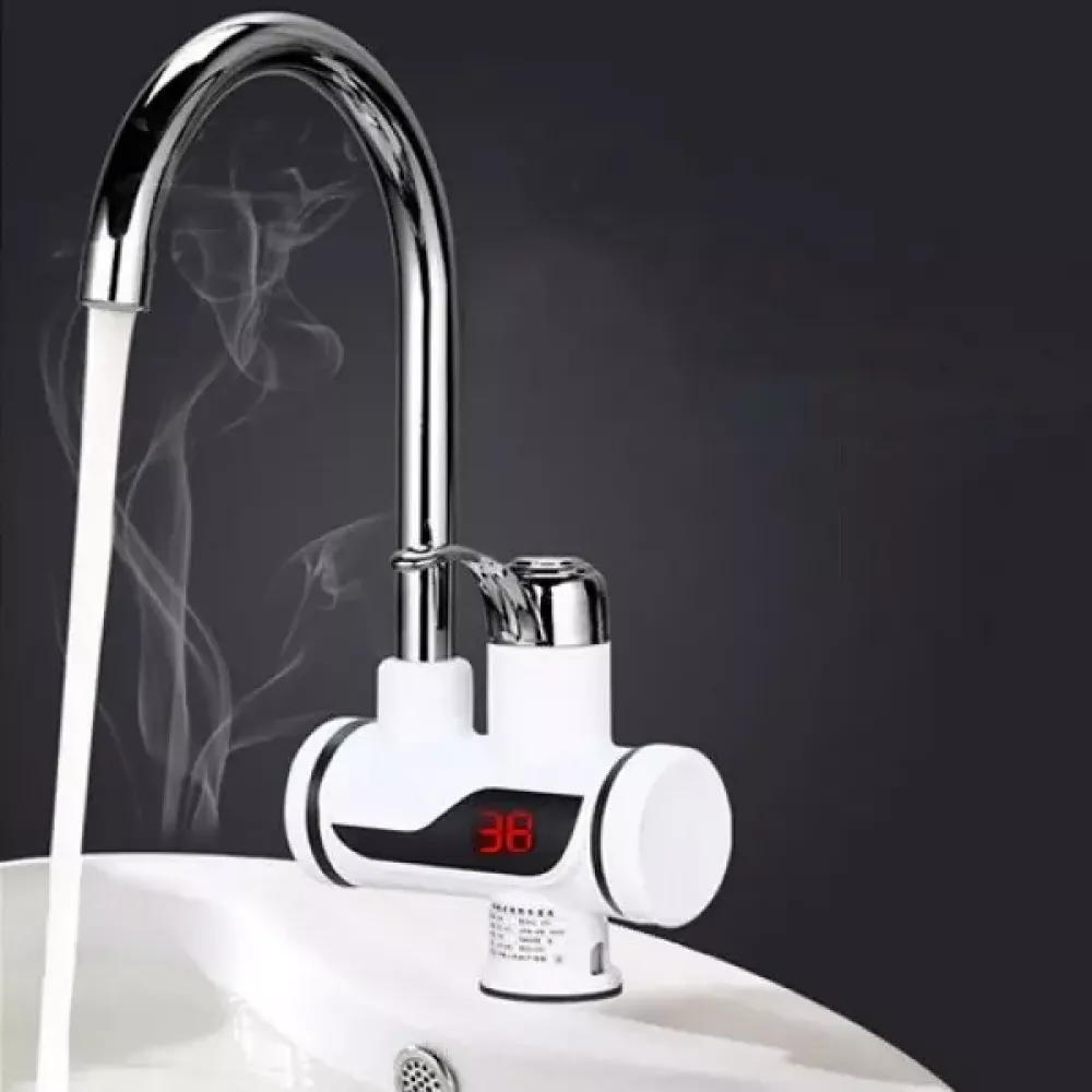 Нагревает воду до 60 градусов в течение 2-3 секунд. Выглядит намного привлекательнее обычного крана на кухне или в ванной. Не требует сложного монтажа - вы легко установите его самостоятельно. Занимает намного меньше места, чем обычные бойлеры и накопительные водонагреватели. Существенно экономит электроэнергию по сравнению с обычными нагревателями. Проточный водонагреватель электрический на кран Lcd оснащен Lcd-дисплеем, который позволит Вам точно контролировать температуру воды. Соединительная вставка подачи воды снизу.