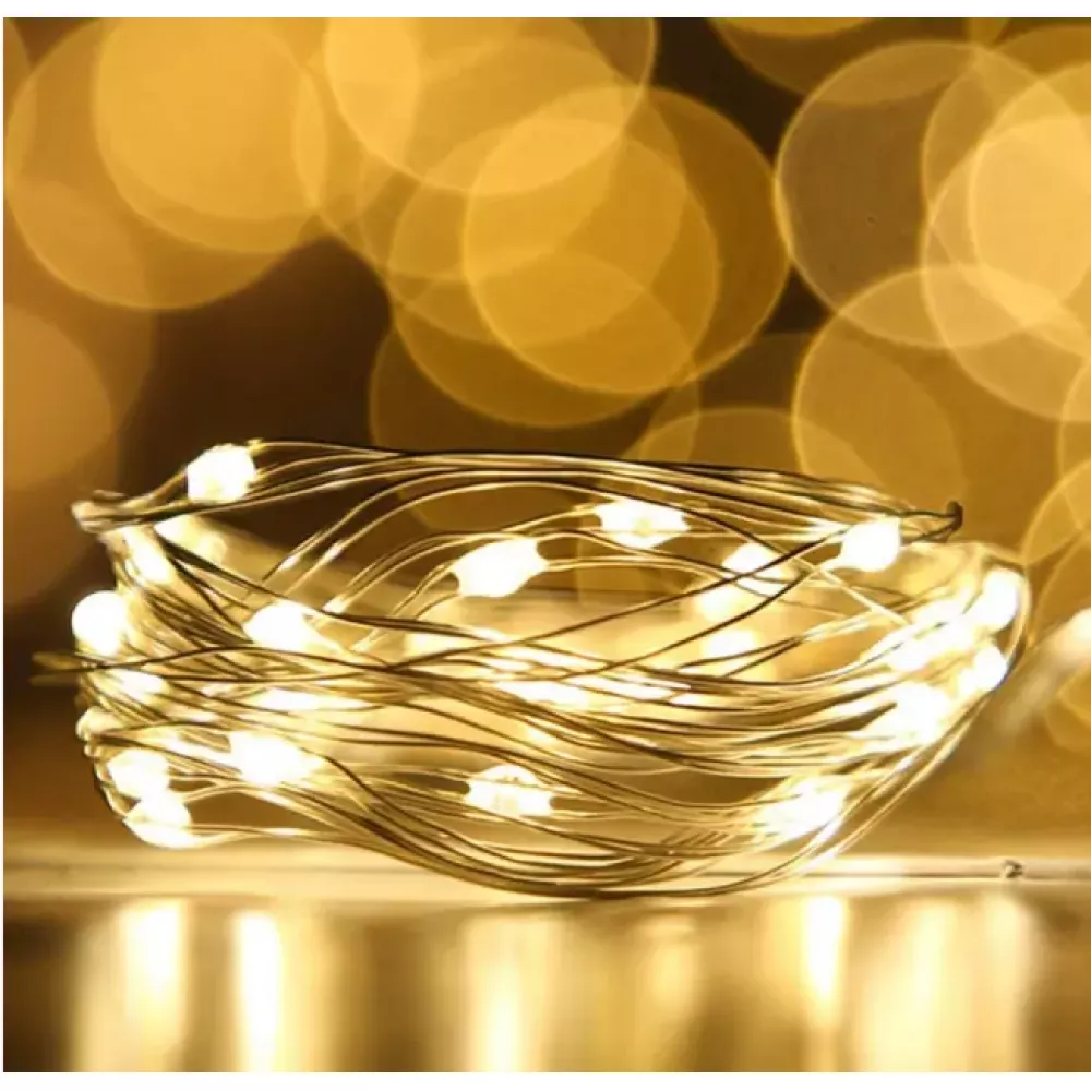 Новогодние гирлянды. Медная проволочная лампа 100LED 10м, Теплый