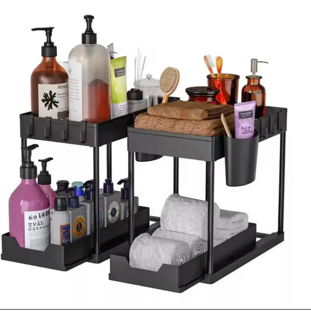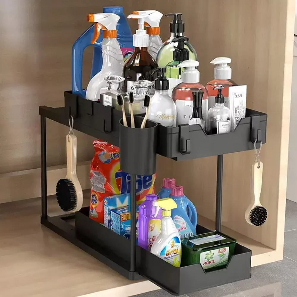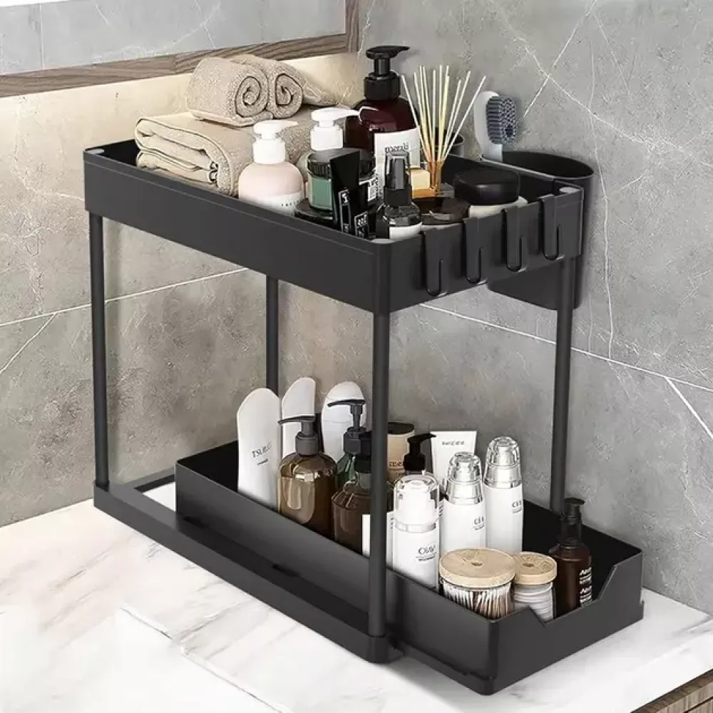 Органайзер двухуровневый с выдвижным ящиком для хранения и крючками