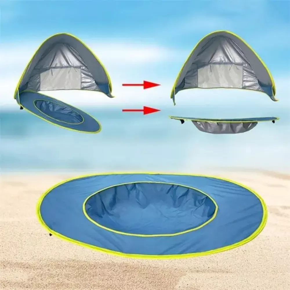 Особенностью палатки является то, что она включает в себя небольшой бассейн, который позволяет вашему ребенку безопасно наслаждаться водой в солнечный день на пляже.