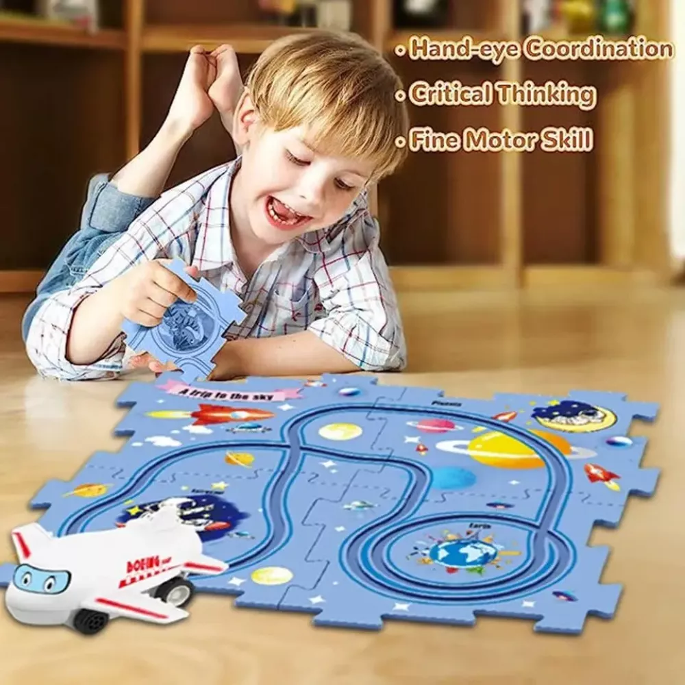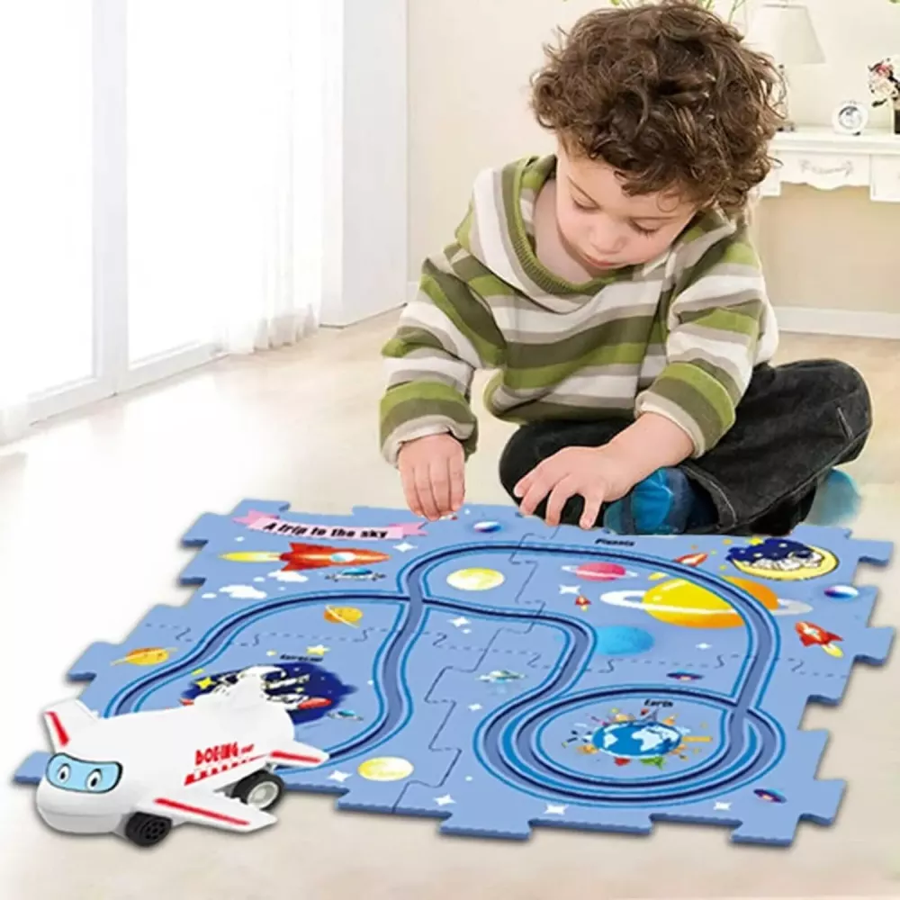 Этот пазл с игрушечным самолетом идеально подходит для детей от 3 лет. Составляя картинку, ваш ребенок не только развивает мелкую моторику и логическое мышление, но и узнает о транспортных средствах и разных планетах. Пазл состоит из 5 мягких и безопасных деталей, которые легко соединяются, создавая дорожку для игрушечного самолета.