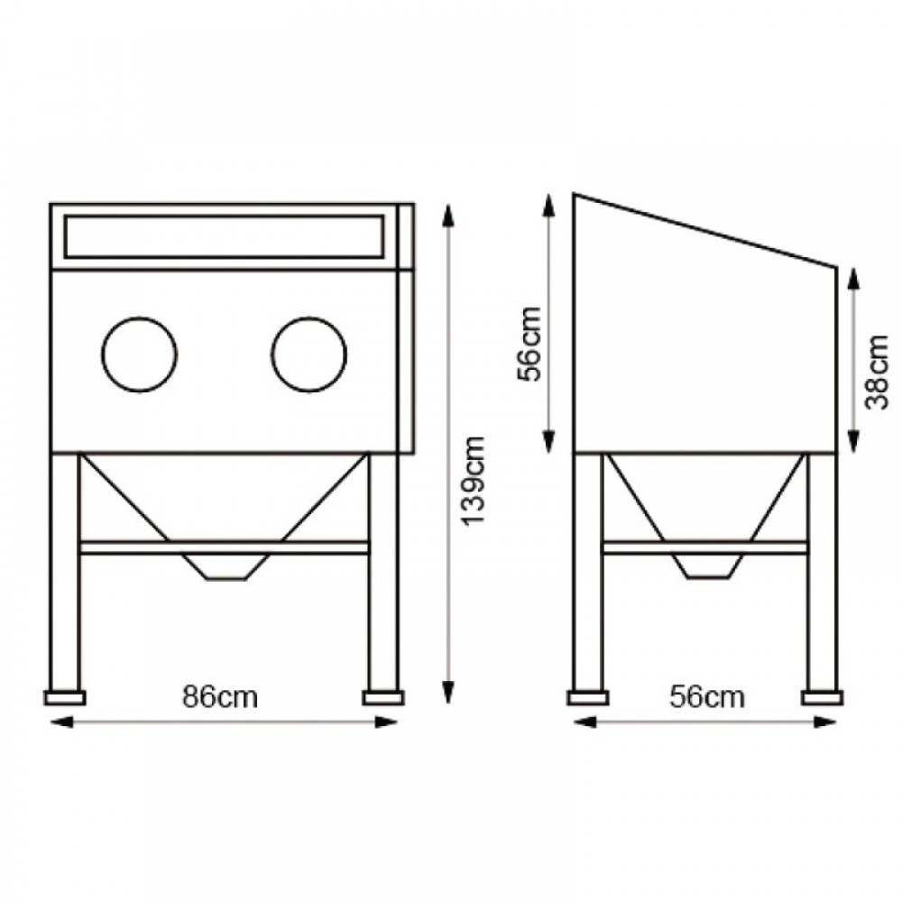 Устойчивые ножки пескоструйной камеры снабжены противоскользящими и виброгасящими резиновыми накладками