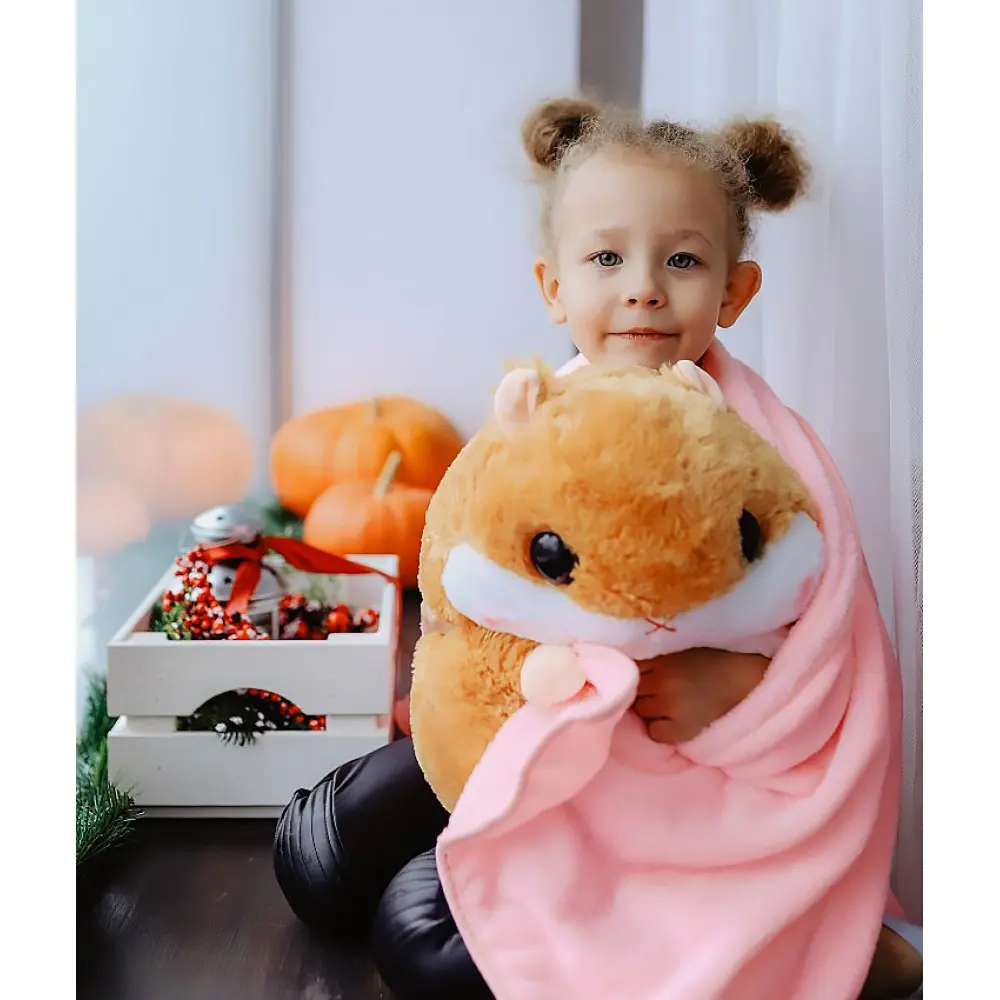 Очаровательный хомяк с теплым пледом, который аккуратно прячется внутрь игрушки, станет приятным подарком на любой праздник.