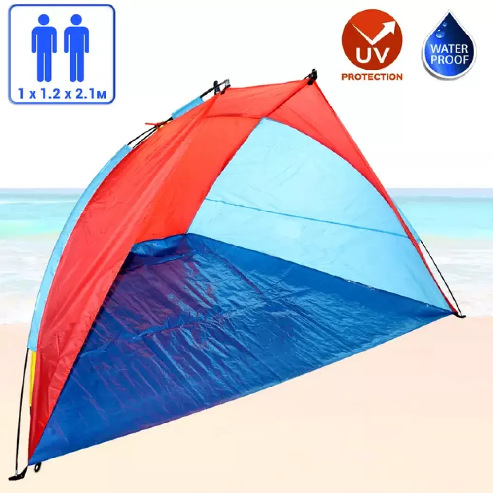 Палатка поможет вам укрыться от жары, в ней можно уложить спать маленького ребенка, когда солнце в самом зените, или наоборот, если вдруг задул ветер или начал накапывать мелкий дождик. В нее можно сложить все вещи, пока вы купаетесь или играете в активные игры. Палатка быстро собирается и разбирается, есть специальный мешок для хранения и перевозки.