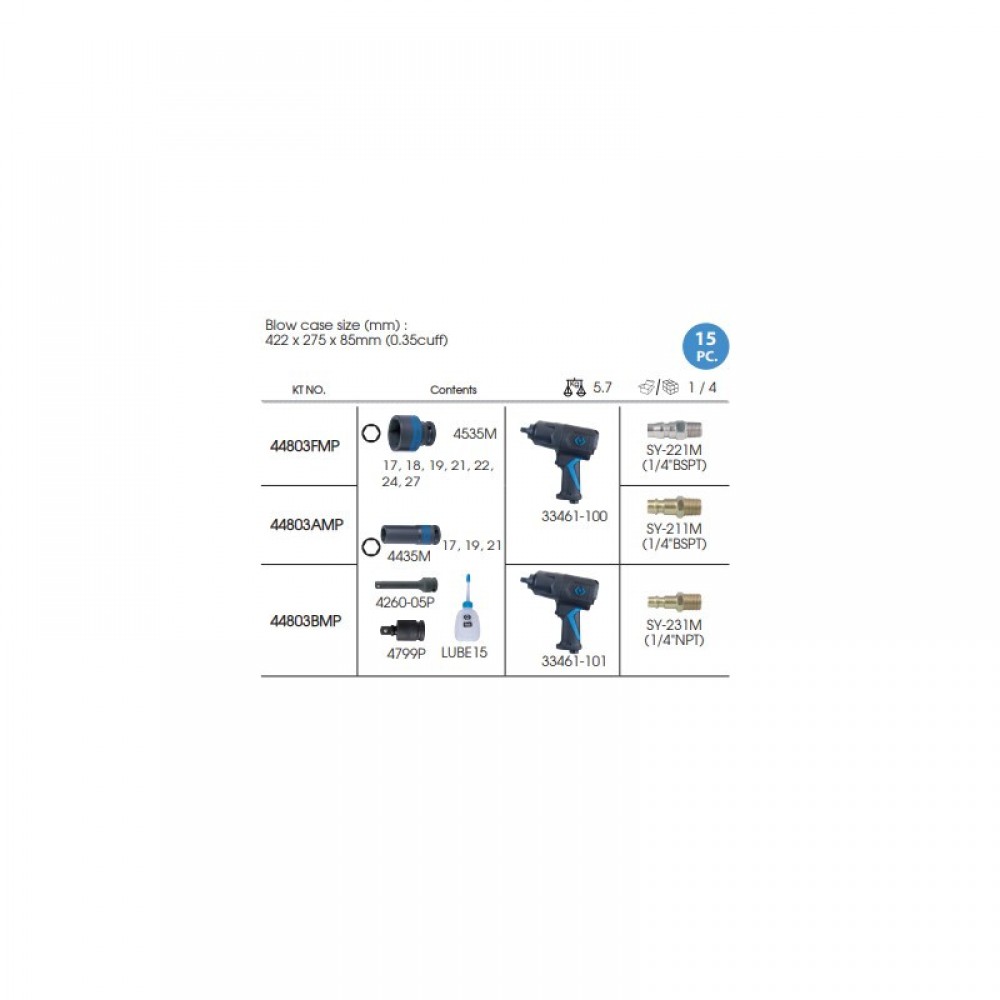 Гайковерт пневматичний, ударний King Tony (44803AMP) – це ручний інструмент для відкручування або закручування гайок та болтів. Орієнтований на автосервіс. Поставляється в комплекті з ударними торцевими головками та пластиковим кейсом.