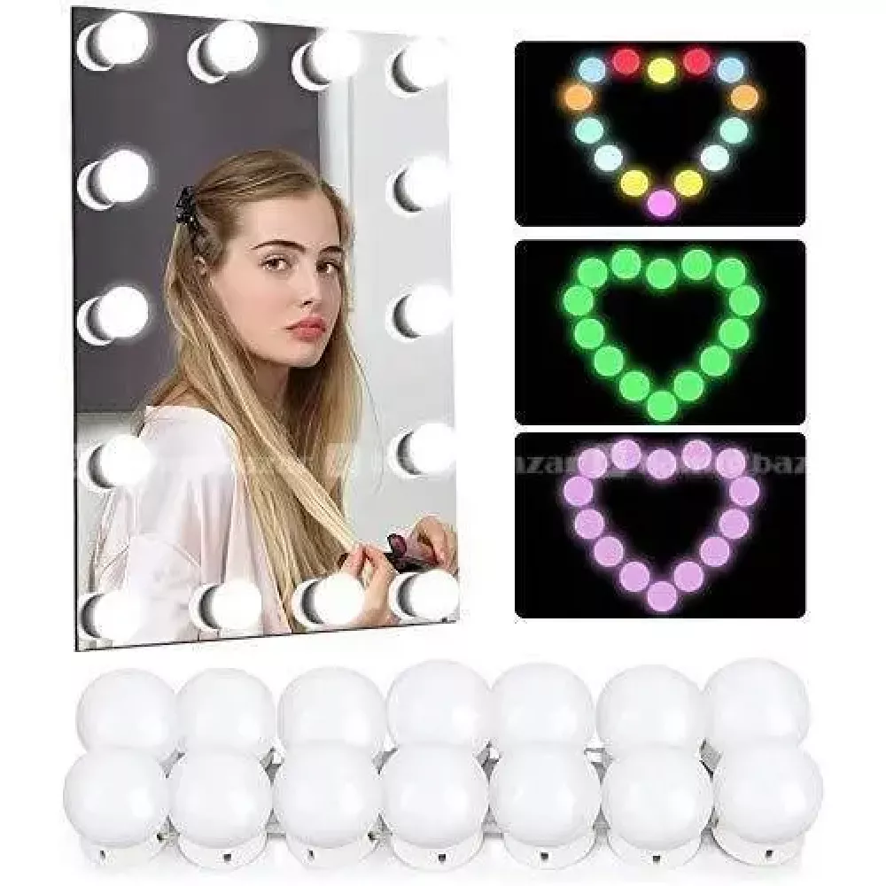 RGB Подсветка зеркала для макияжа Vanity Mirror Lights с регулировкой яркости. LED лампочки для гримерного зеркала 10шт 3 режима от USB