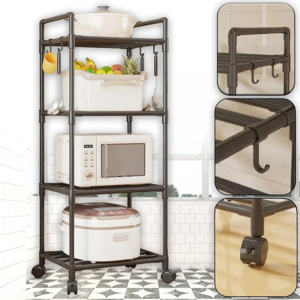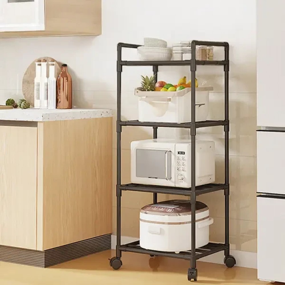 Многофункциональная кухонная полка с 4 уровнями – это удобное решение для организации пространства в вашем доме. Благодаря стильному черному дизайну и компактным размерам она идеально впишется в интерьер ванной комнаты, кухни, спальни, офиса или гаража.