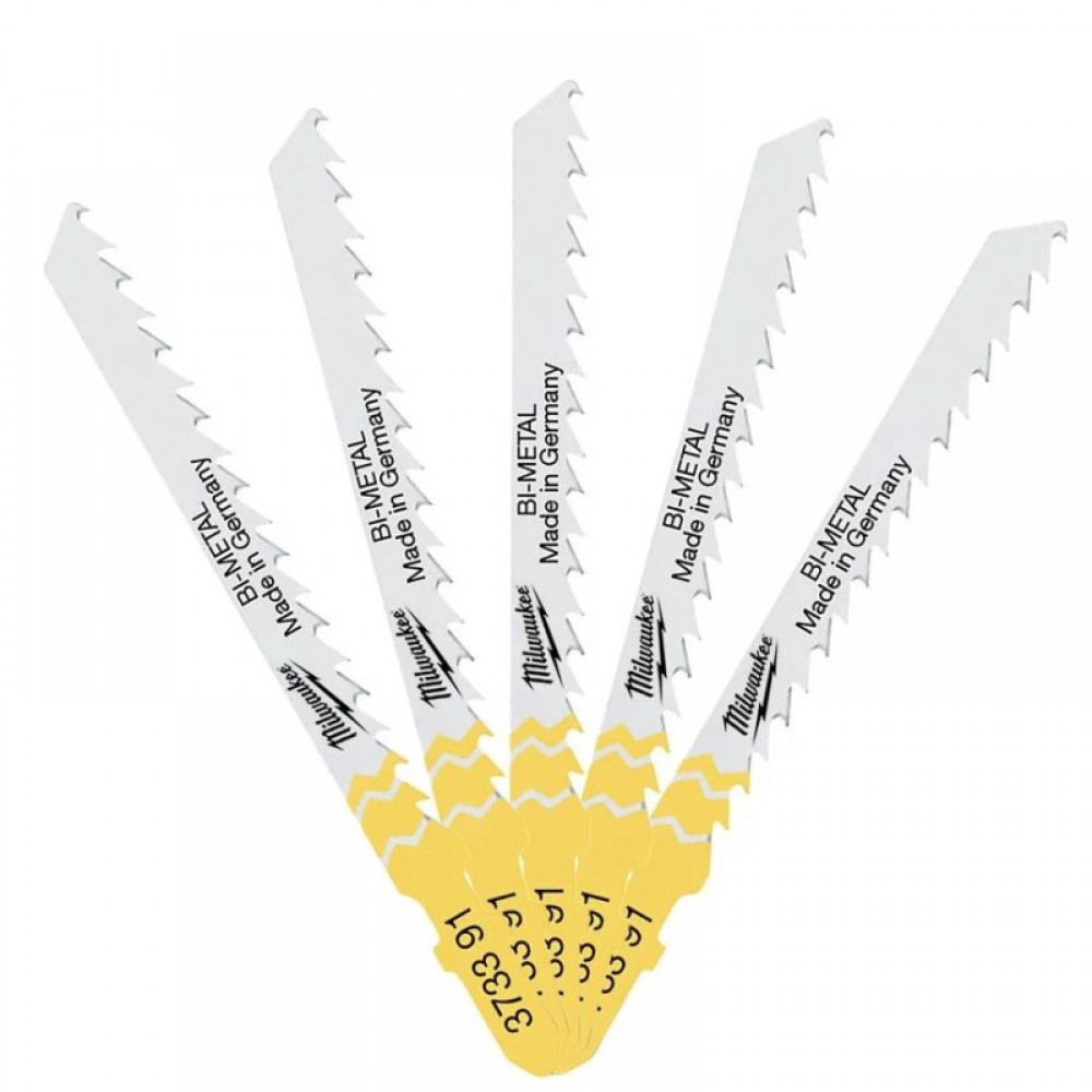 Полотна для лобзика T144DF Bi-Metal MILWAUKEE, 75мм/ крок зубу 4,0мм, (5шт), (деревина, швидкий різ)