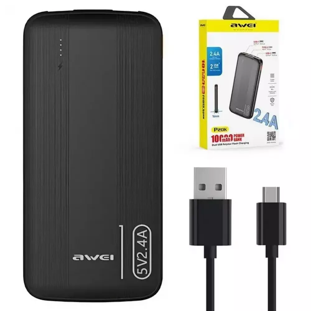 POWER BANK AWEI P20K 10000mAh 2.4A – ваш незаменимый источник энергии в любой ситуации! Этот портативный аккумулятор станет верным спутником в путешествиях, деловых поездках и просто в повседневной жизни, когда розетка недоступна. Благодаря емкости 10000mAh вы сможете несколько раз полностью зарядить свой смартфон, планшет или другие устройства, оставаясь всегда на связи и не упуская важных моментов.