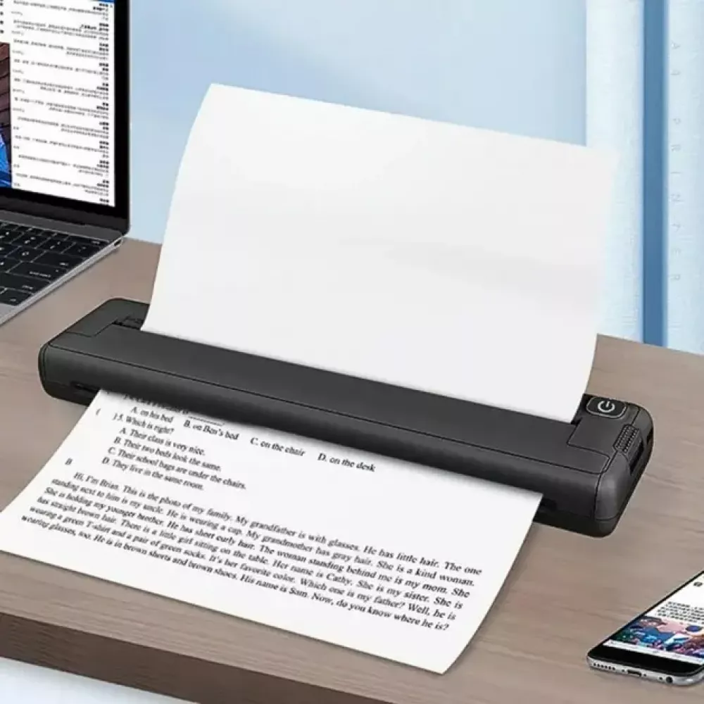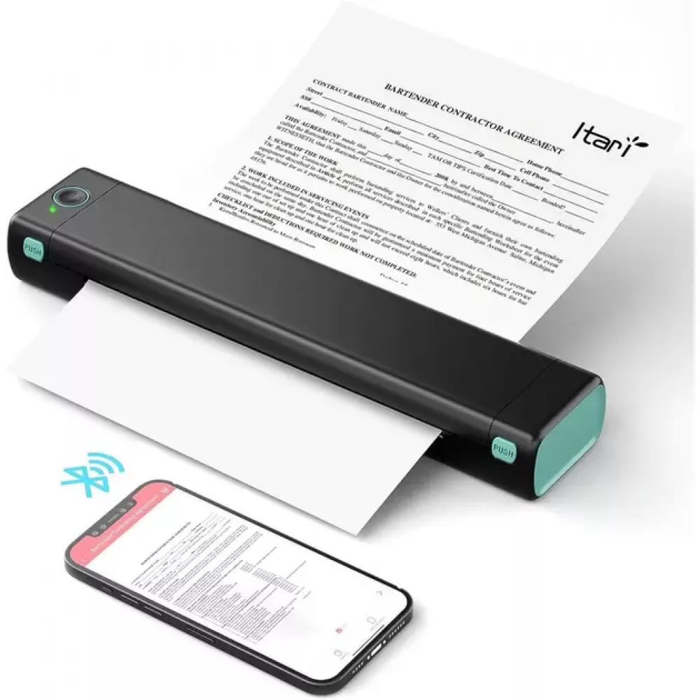 Портативный принтер: беспроводной, компактный и портативный для путешествий, мобильного офиса или просто печати в любом месте. Этот маленький портативный принтер легко поместится в портфель или сумку для компьютера, и его можно быстро использовать в автомобиле или небольшом рабочем месте.