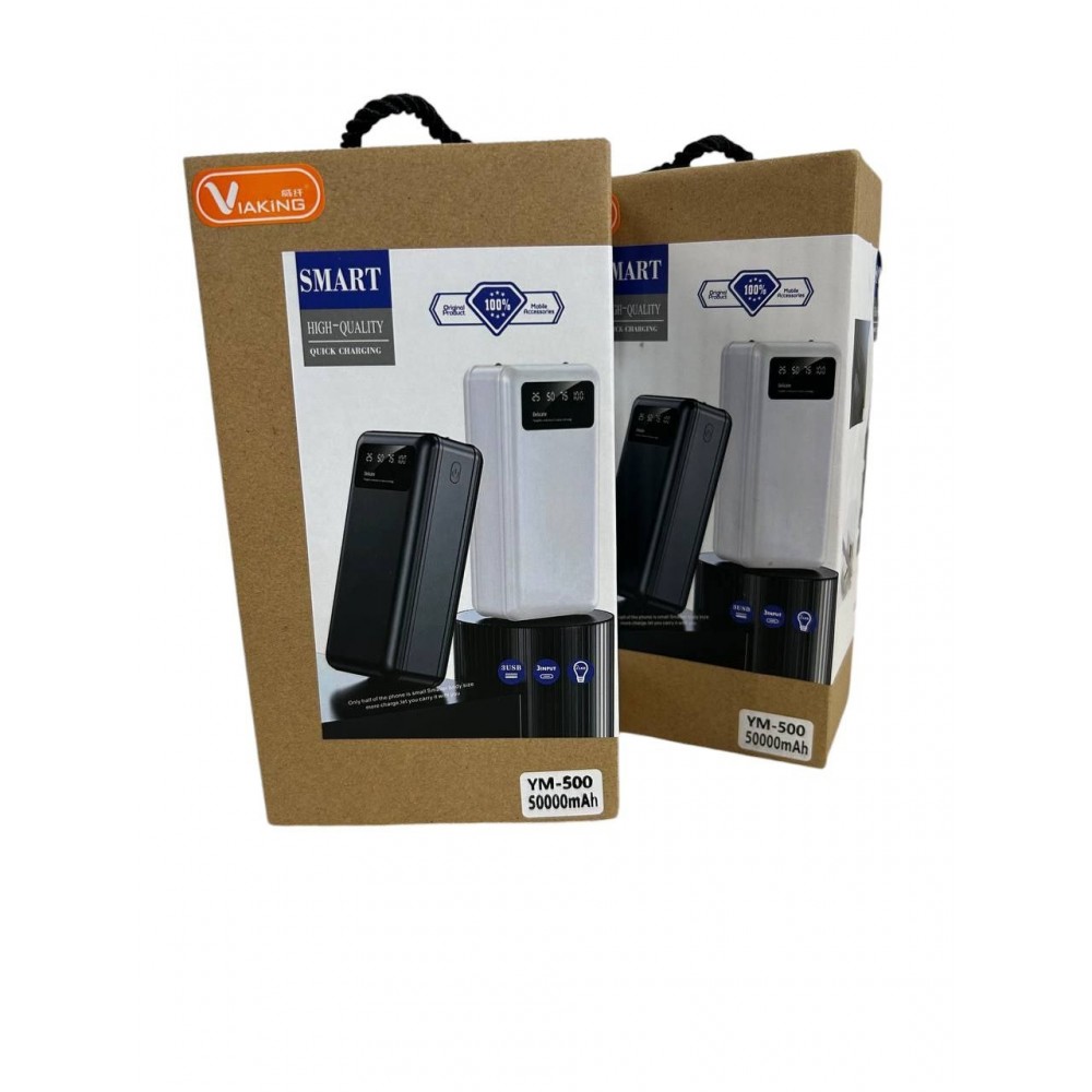 Повербанк power bank Viaking 50000 mAh YM-500 Фонарь 4 USB порта, дисплей, Powerbank Черный