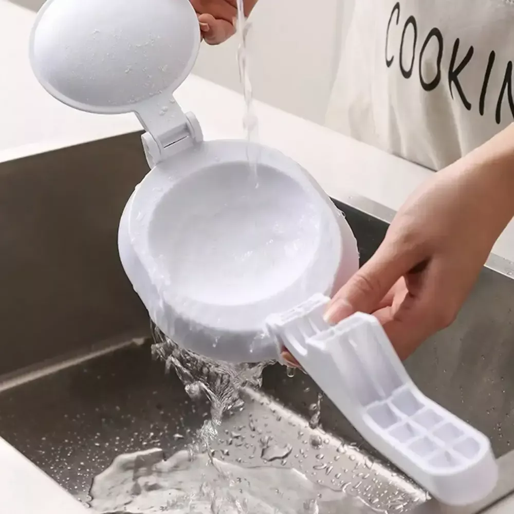 Простота в использовании. Сначала откройте запорное устройство, положите круг из теста на станок, смочив края вращающейся воды водой. Вам лучше сбрызнуть круги из теста несколькими каплями масла, прежде чем помещать тесто в форму. После каждого использования просто продвигайте его водой, чтобы он стал чистым.