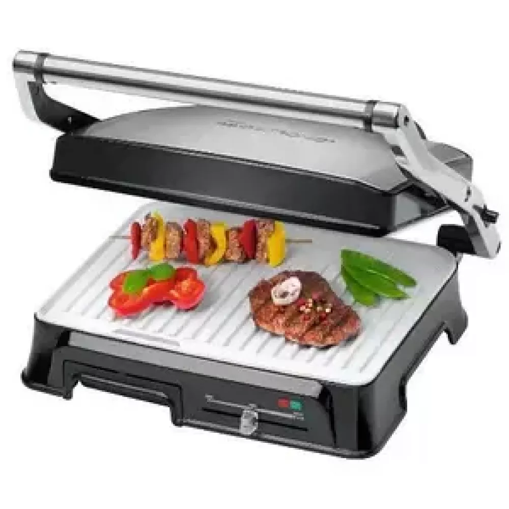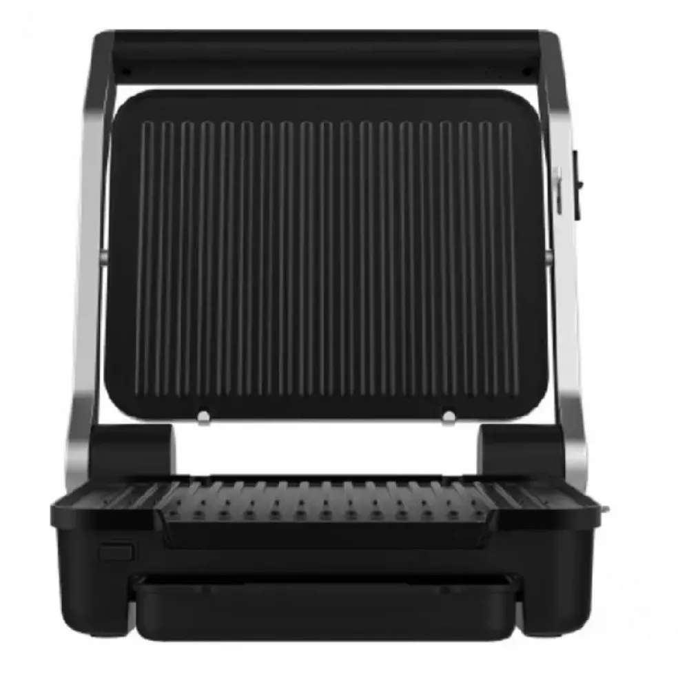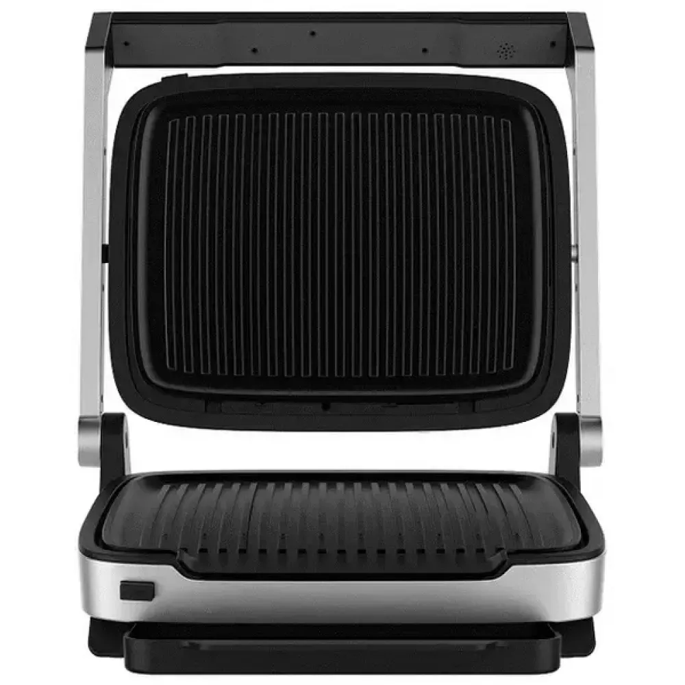 Модель комплектується двома знімними пластинами з антипригарним покриттям, які можна мити в посудомийній машині. Весь жир стікає в пластиковий піддон, що легко знімається однією рукою.
