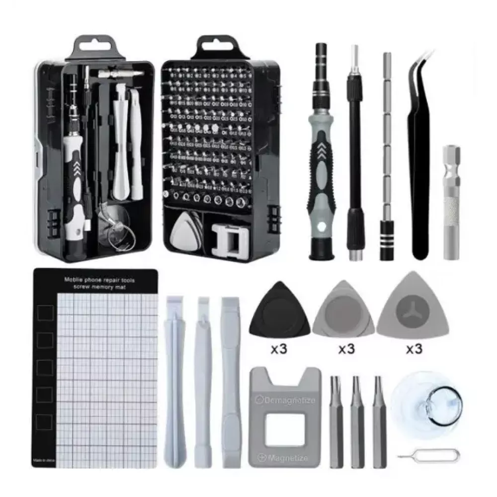 Набор отверток 135 в 1 предназначен для точных работ по ремонту телефонов, часов, планшетов, игрушек и компьютерной техники.