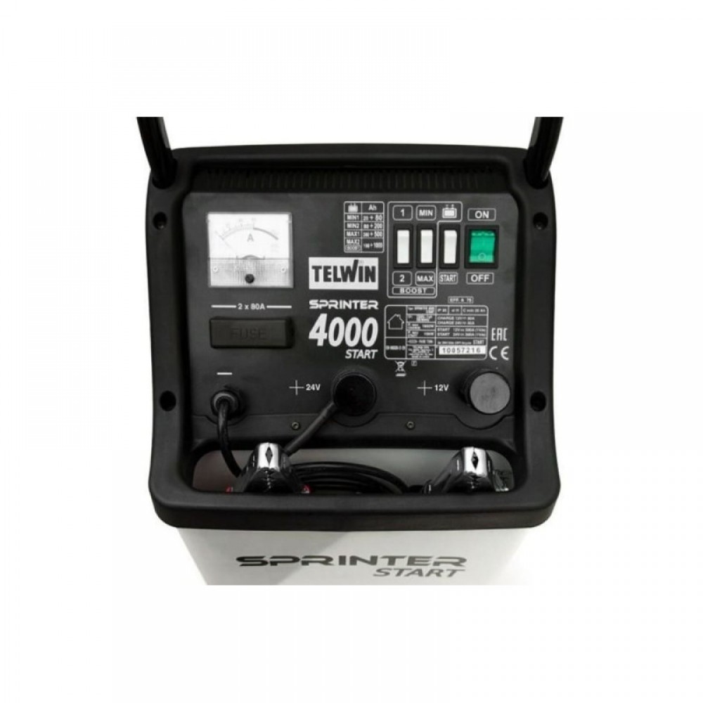 Пускозарядний пристрій Telwin SPRINTER 4000 START 230V 12-24V Пуско-зарядний пристрій (230 V, 12-24 V) TELWIN SPRINTER 4000 START 829391 призначений для запуску двигуна з акумулятором, що сів, а також для відновлення заряду АКБ. Модель оснащується стрілочним амперметром, який служить візуального контролю над величиною струму. Системи захисту від перевантажень та зміненої полярності дозволяють уникнути передчасної поломки виробу. Ручка ергономічної форми забезпечує маневреність під час переміщення. Вбудована кишеня сприяє зручності зберігання затискачів та кабелів. Переваги пускозарядного пристрою Telwin SPRINTER 4000 START 829391 Струм конвенційного заряду - 50 А; Потужність - 1600/10000 Вт; Струм запуску 1V/C - 300 А; Вибір функції нормального заряду, швидкого заряду (BOOST), швидкого запуску; Захист від перевантажень та зміненої полярності; Висока якість комплектуючих; Тривалий термін служби. Напруга живлення, 220 Для акумуляторів напругою, 12/24 Заряджання лужних акумуляторів ні Max струм запуску, А 400 Режим десульфатації ні Тип заряджання традиційна зарядка (WET, EFB) Режим Boost так Min струм заряду, А 2 Max струм заряду, А 75 Чи зможе запустити мотоцикл, автомобіль, автобус, човен, трактор, вантажівка Габарити без упаковки, мм 320х380х780 Max споживана потужність зарядки, Вт 1600 Max споживана потужність запуску, кВт 10 Min ємність акумулятора, А*ч 20 Max ємність акумулятора, А*ч 1000 Вага нетто, кг 16
