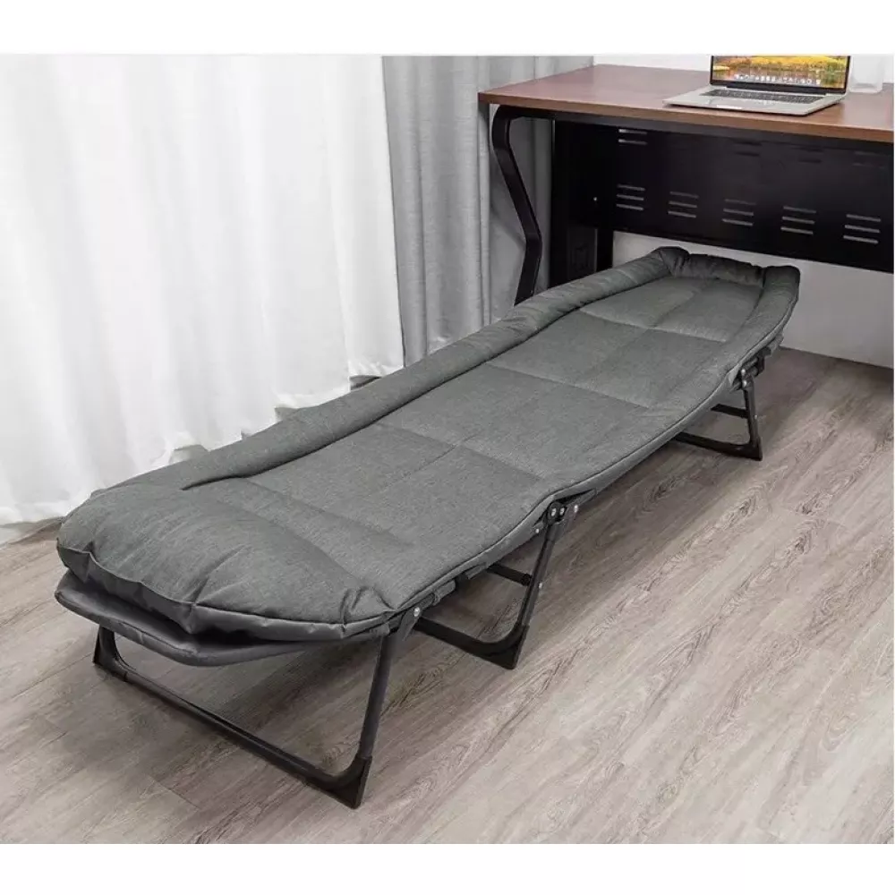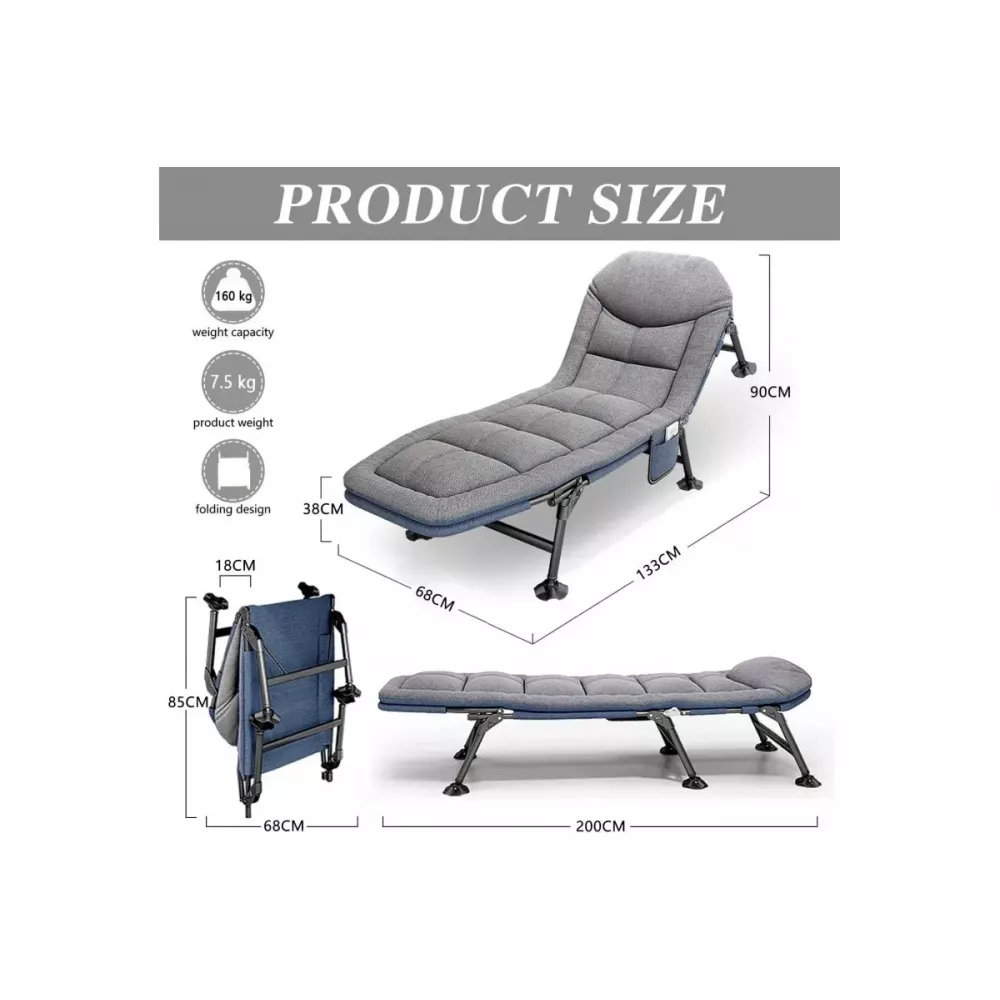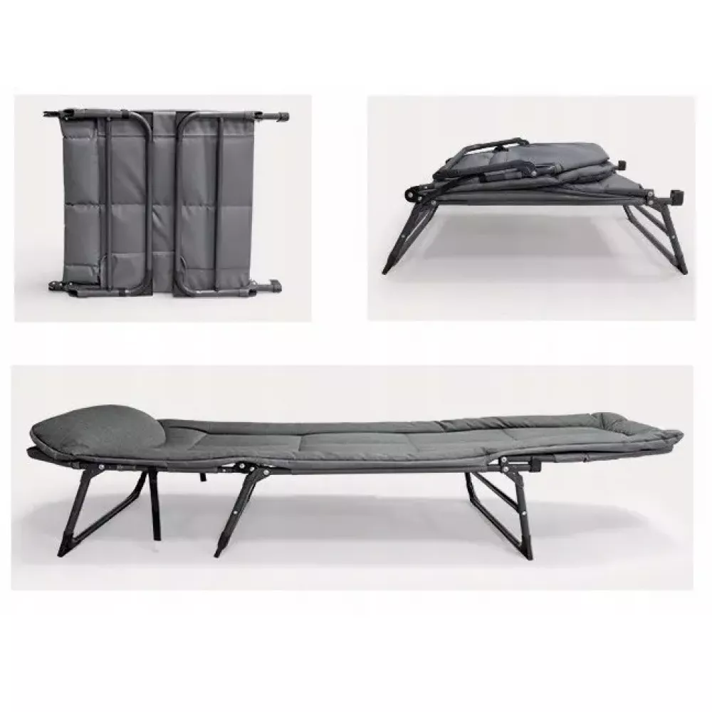 Раскладушка – это полноценная кровать в походных условиях. Её можно установить в горизонтальном положении на неровной поверхности, подстроив каждую из восьми ножек в отдельности.