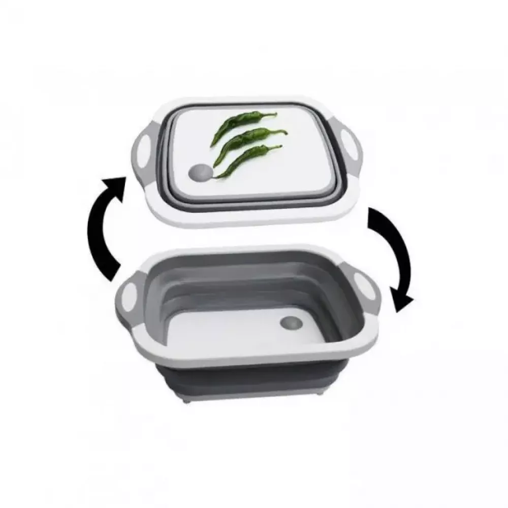 Доска со складной миской будет незаменимой на пикнике или в туристическом походе так как займет мало места и позволит хорошенько промыть продукты.