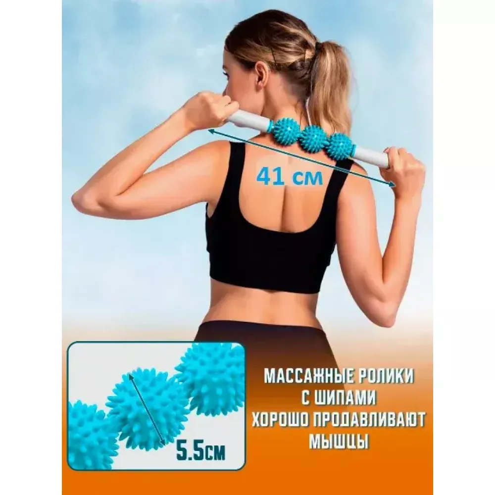 Ролик массажный для йоги массажер для спины валик для фитнеса Massage stick AND 5284 (Шарики 3 шт)