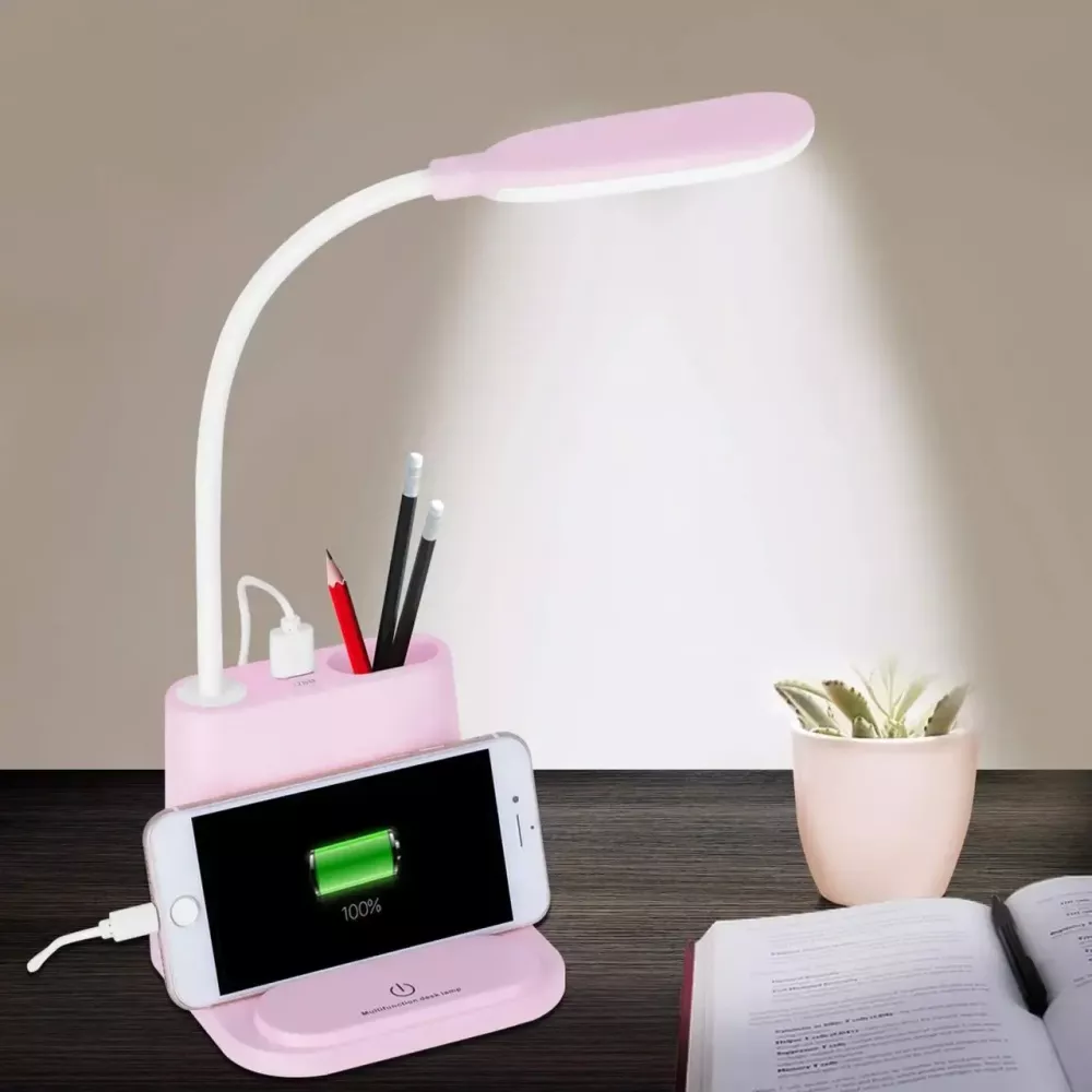 Розовая Аккумуляторная Настольная LED лампа Bionic Desk Lamp c USB выходом, органайзером и подставкой для смартфона