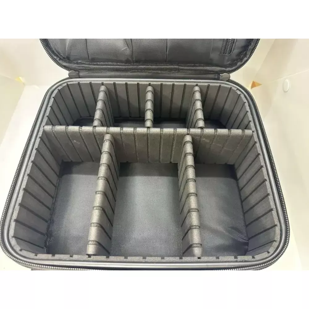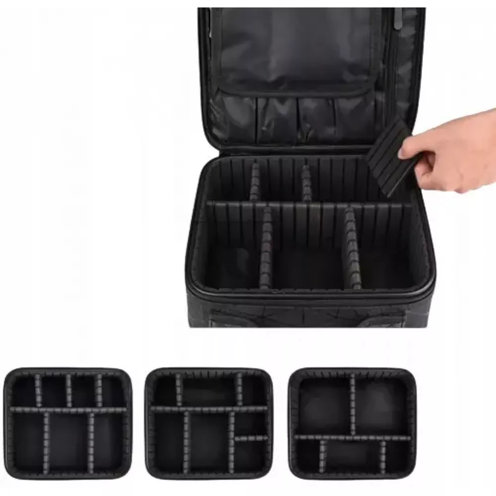 Органайзер бокс бьюті кейс косметичка валіза сумка для зберігання косметики та приладдя 26х23х10 см Бьюті-кейс у вигляді валізки ідеально підійде як для майстрів, так і для подорожей або домашнього зберігання косметики. Органайзер із двома відділеннями - одне основне + додаткове на блискавці. Основне відділення зі знімними роздільниками-перегородками. Перегородки дозволяють створювати 11 і менше осередків під ваші потреби. Перегородки можна зняти та використовувати лише одне загальне відділення. На кришці є 12 вертикальних кишені, що закривається клапаном на липучці + кишеню на блискавці. Для того щоб кришка боксу була зафіксована, передбачені ремінці на карабінах. Довжину ремінців можна регулювати, змінюючи кут нахилу кришки. Додаткове відділення знаходиться над основною, всередині велика сітчаста кишеня на блискавці + два ремінці на липучках для фіксації предметів, інструментів та ін. Плечовий ремінь у комплектації. Такий органайзер можна використовувати: для косметики та макіяжних кистей; для матеріалів та інструментів у напрямках манікюру, нарощування вій, косметології; для матеріалів та інструментів з рукоділля. особливості: Колір чорний Розмір: Ширина - 23 см Глибина – 26 см Висота – 10 см ]]>