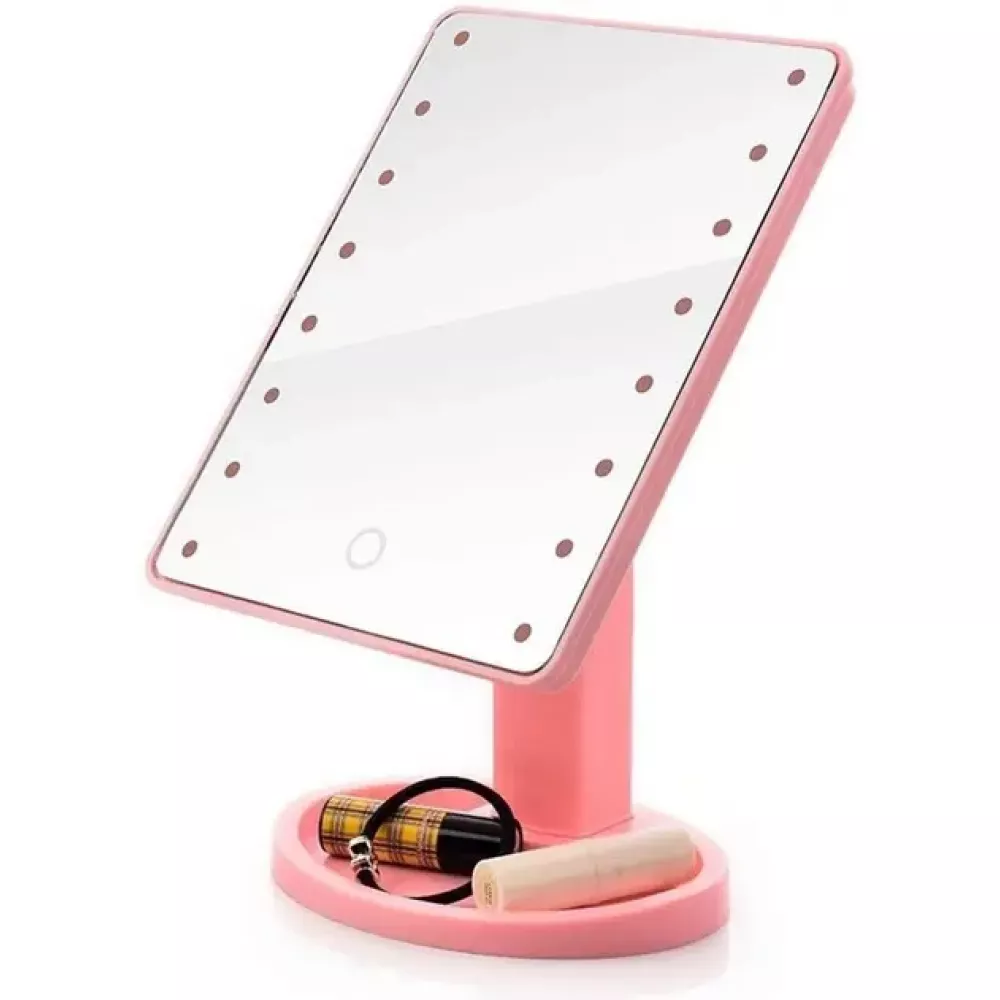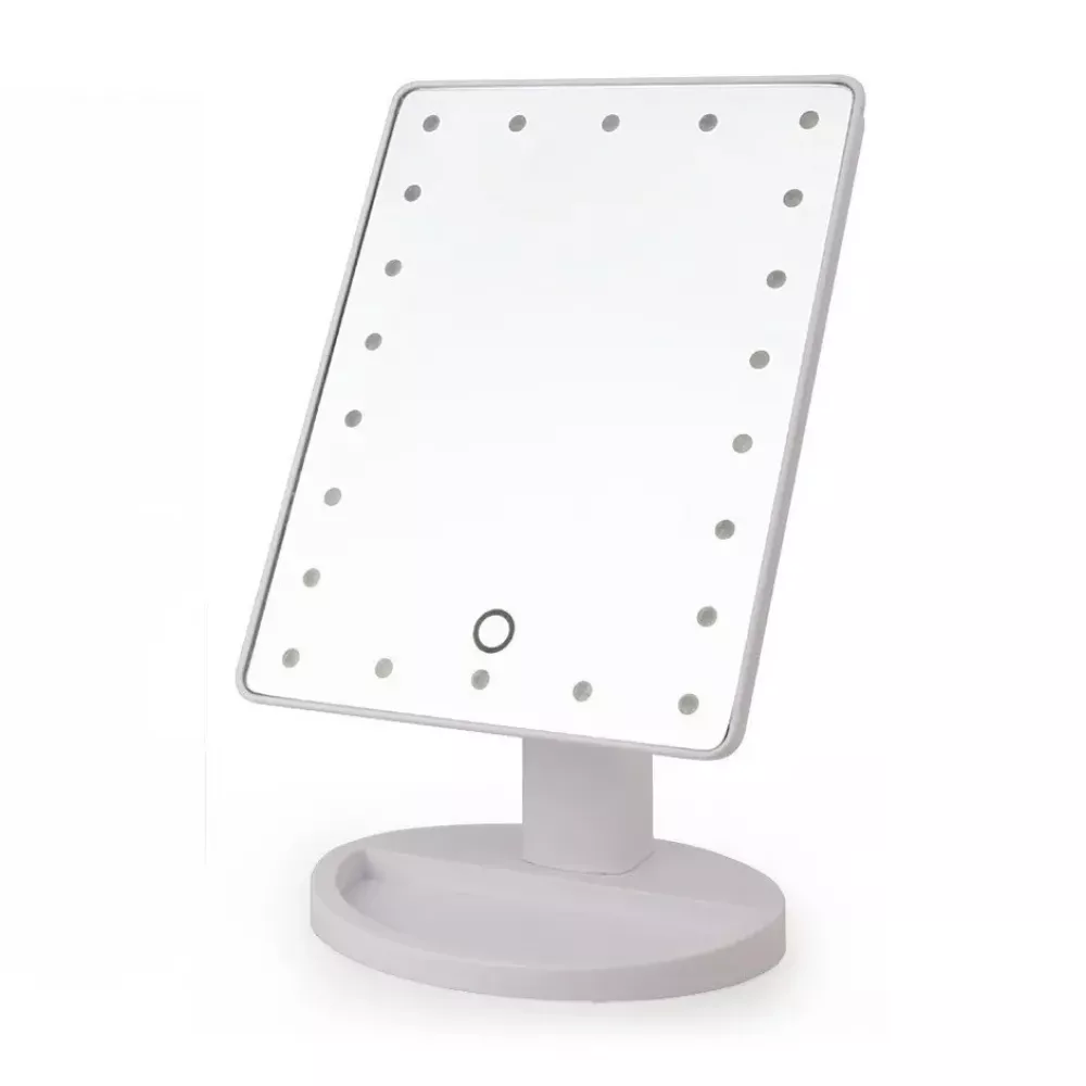 Включить и выключить зеркало можно при помощи специальной сенсорной кнопки. Освещение работает за счет обычных батареек. Специальная подставка позволит разместить на ней различные косметические мелочи, например, губную помаду, пудру, тени для глаз или что-нибудь другое, а свободное вращение на 180° позволяет зафиксировать косметическое зеркало в удобном для вас положении.