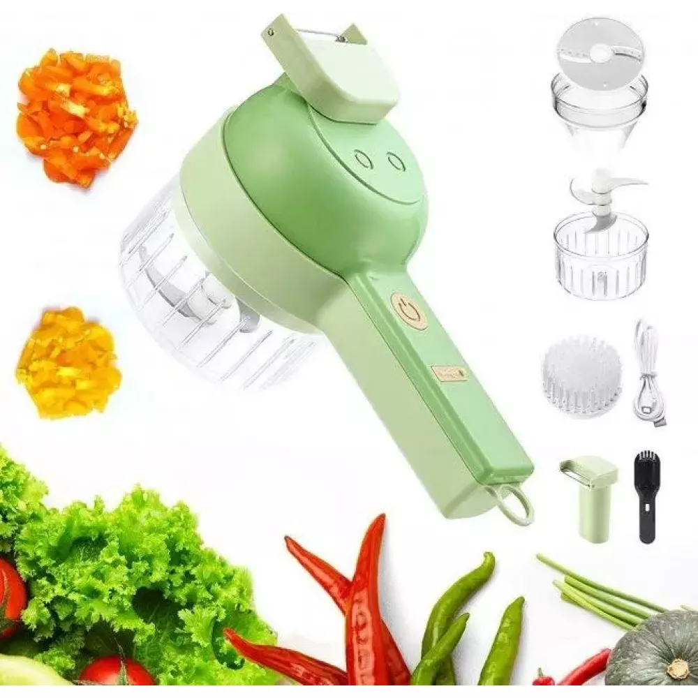 Ручной измельчитель для овощей 4в1 Food Chopper / Электрическая кухонная овощерезка / Мини блендер-слайсер