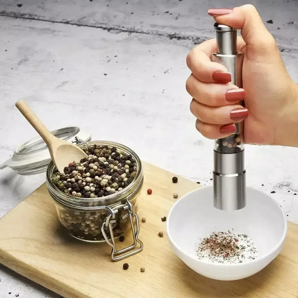 Удобная форма и эргономичный дизайн делают его простым в использовании – достаточно нажать на верхнюю часть мельницы, и соль или перец будут измельчаться до нужной степени. Также, удобная конструкция делает очистку мельницы от остатков специй быстрым и простым процессом. Благодаря механическому принципу работы, эта мельница для перца не требует подключения к электросети или батарейкам.