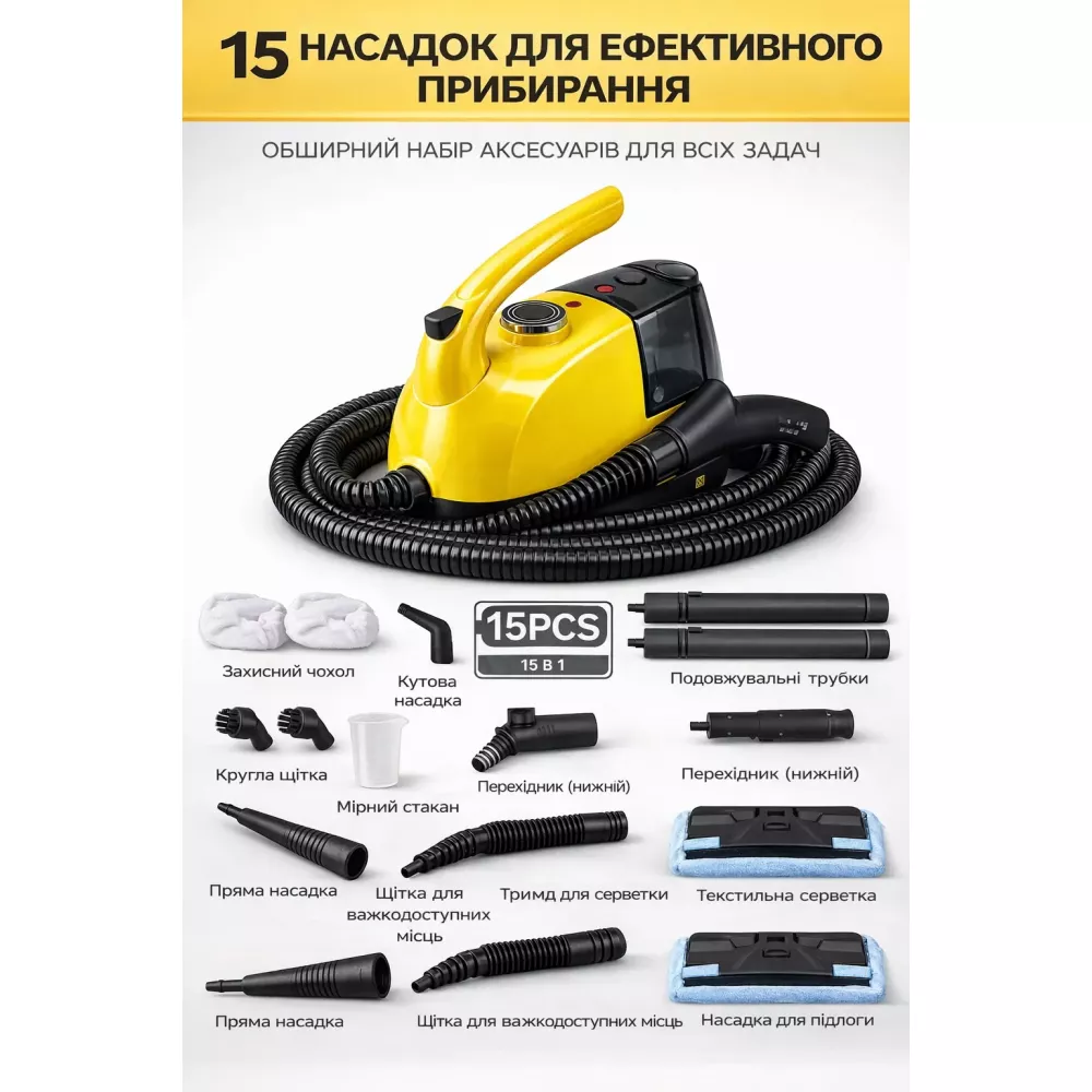 Пароочиститель DF-A968 с объемом бака 1,5л – это надежное решение для глубокой очистки различных поверхностей без использования химии. Благодаря мощной подаче пара и широкому набору насадок, он легко справится с грязью на плитке, швах, мебели, коврах и даже в автомобиле. Простой в использовании, экологичный и эффективный – идеальный выбор для ежедневной уборки.