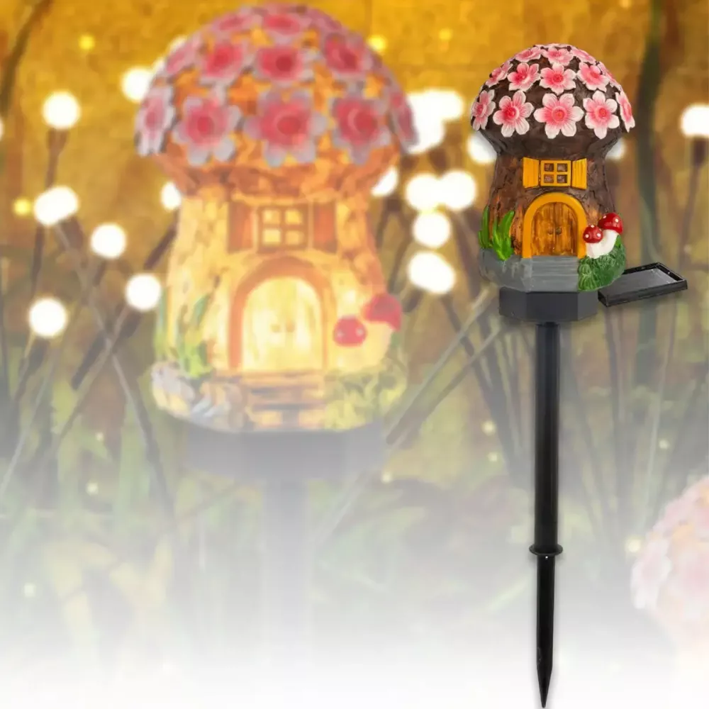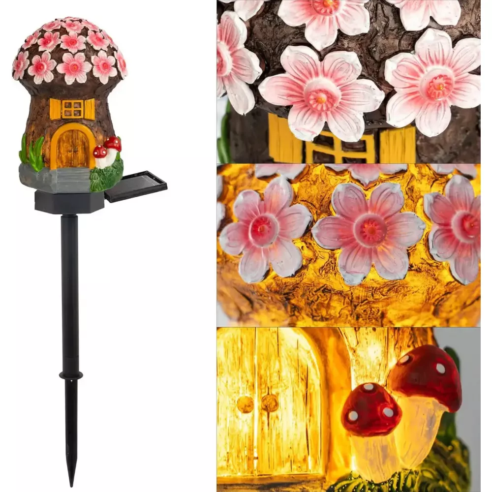 Очаровательный светильник в виде грибного домика станет необычным украшением вашего участка. Днем он радует глаз своей подробной проработкой, создавая атмосферу волшебства, а ночью излучает теплый свет, словно внутри действительно живут сказочные существа.