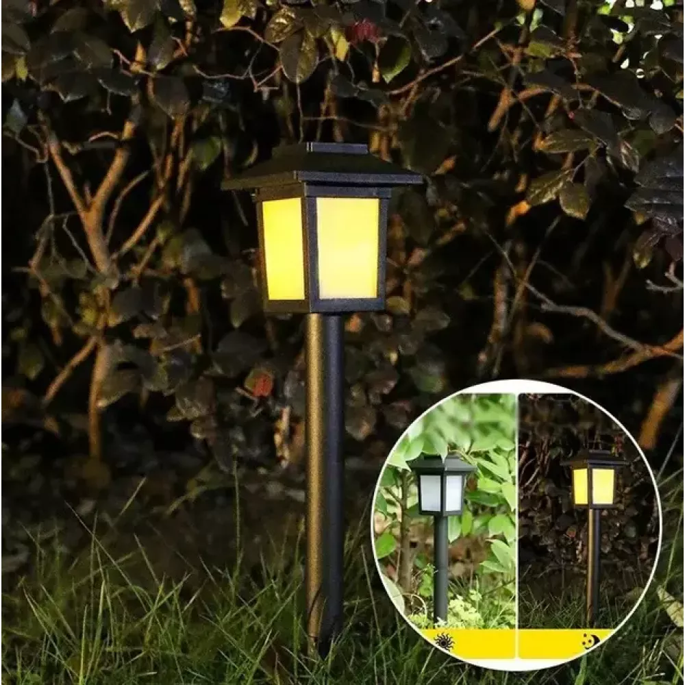 Садовый фонарь работает полностью автономно без подключения к сети. Фонарь автоматически включается с наступлением сумерек и выключается утром, оснащен кнопкой on/off, питается от встроенного аккумулятора ААА 200mAh 1.2V(сменный), который заряжается днем.