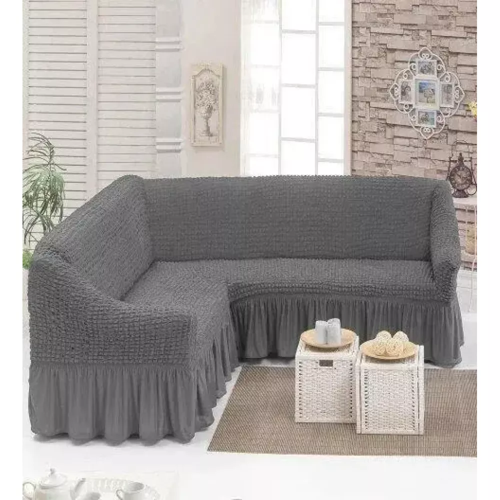Цвета чехлов на угловые диваны с рюшей: сиреневый, молочный, салатовый, синий, персиковый, мятный, розовый, оливковый, фиолетовый, бордовый, серый, антрацит, песочный, коричневый, бежевый