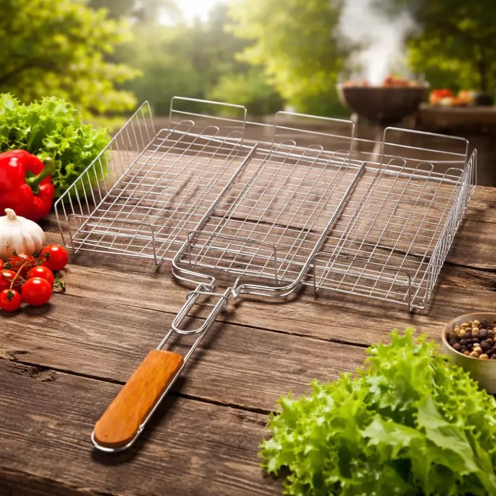 Незаменимая помощница для приготовлении пищи на открытом воздухе. Прутья данной решетки изготовлены из нержавеющей стали, и покрыты пищевым никелированным, антипригарным покрытием.