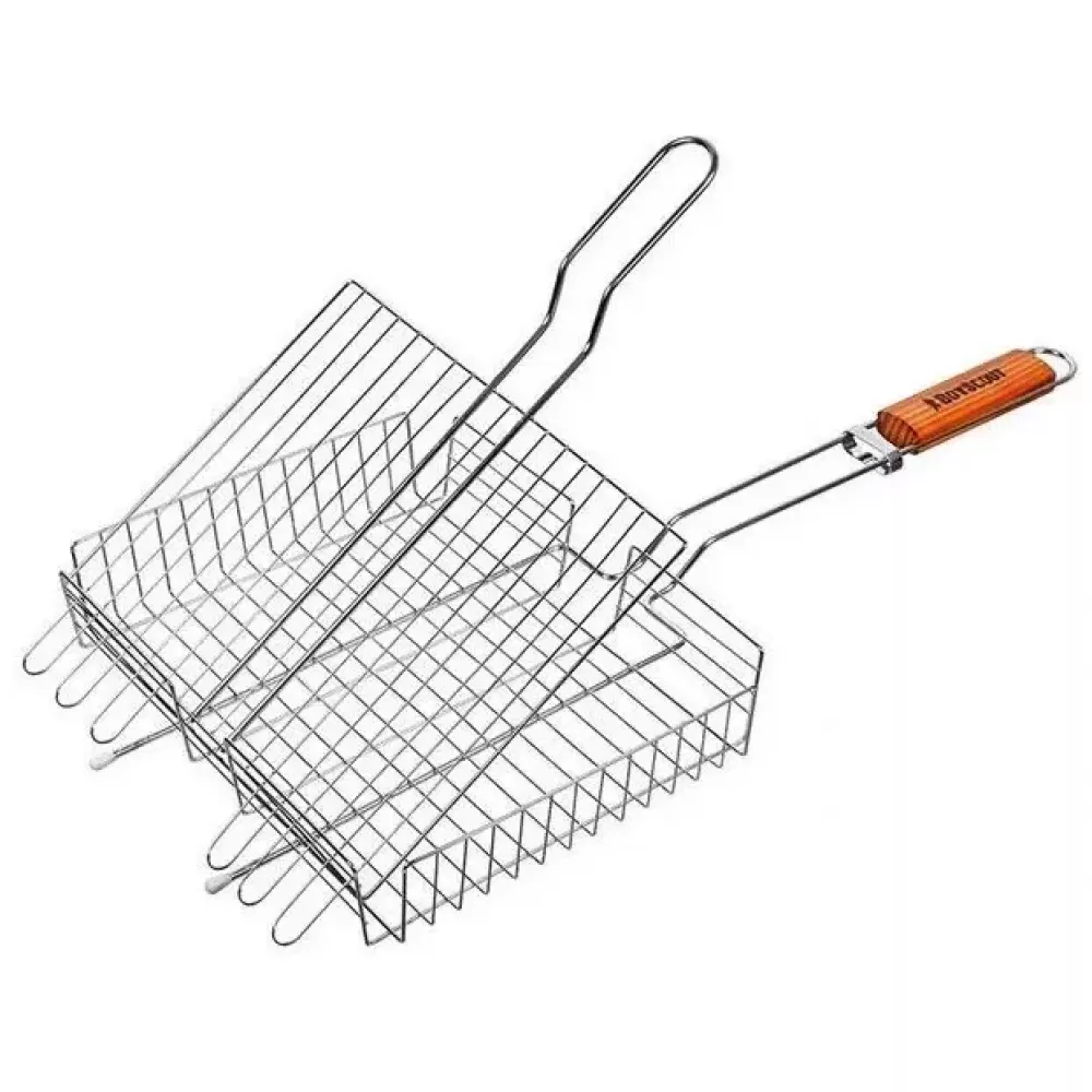 Решетка подходит для приготовления абсолютно разных продуктов и конечно же позволяет готовить минимальные порции, а также благодаря специальной форме плетения стальных прутьев, придаст обжаренной пище великолепный аппетитный вид.