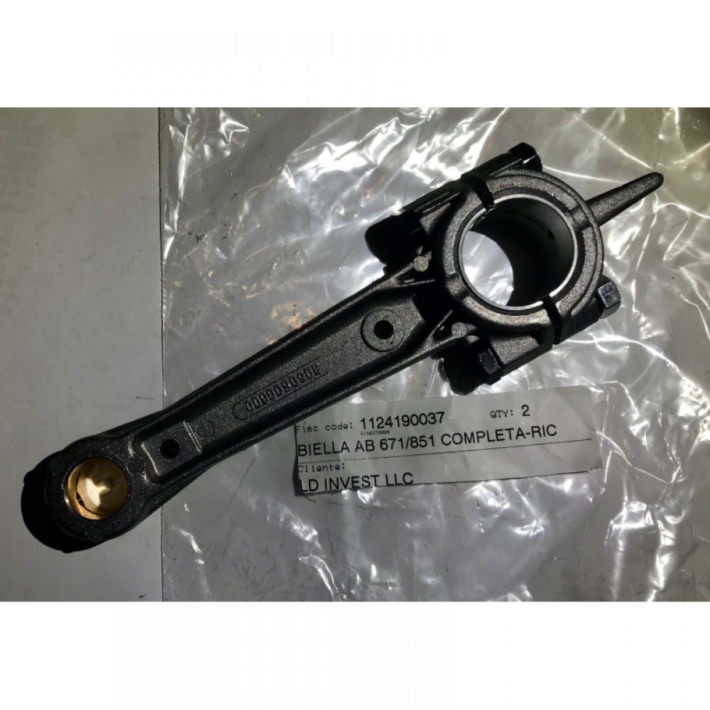 Шатун із вкладишами у зборі для АВ858 FIAC (1124190037) – це змінний компонент для компресорного обладнання, що використовується для створення стисненого повітря. Постачається в повній комплектації, з усіма вкладками та елементами кріплення до колінчастого валу. Належить до категорії витратних матеріалів – має термін експлуатації.
