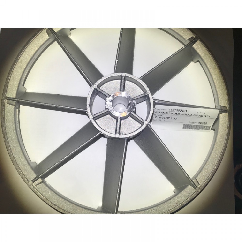 Шкив DP.350 1-GOLA-3V-AB 510 для поршневого компрессора FIAC – это сменный элемент двигателя, устанавливаемый на выходной вал электромотора. Задача шкива – передавать энергию вращения от мотора поршневой группе, сжимающей воздух. Второстепенная задача шкива – охлаждение электромотора во время работы. Лопасти компонента имеют определённый угол наклона, который создаёт воздушный поток на привод.