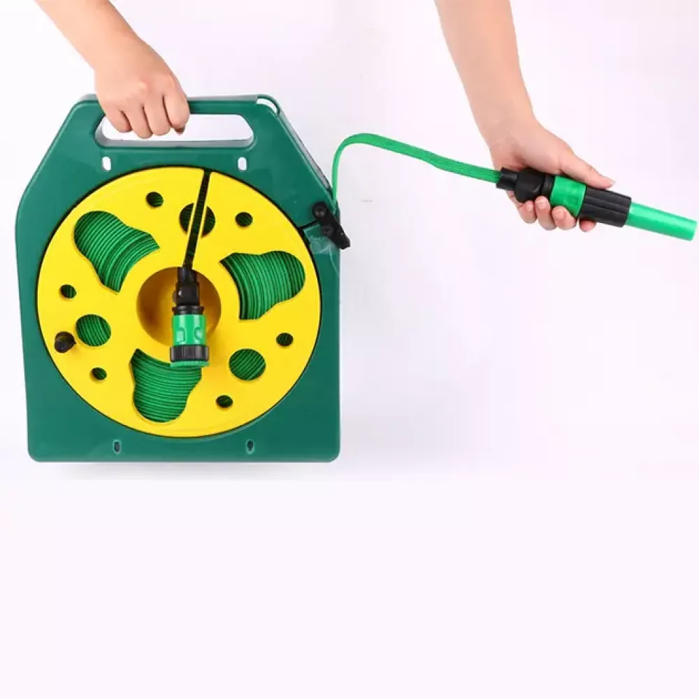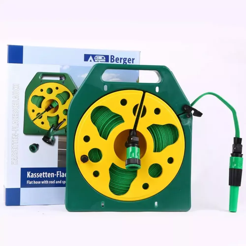 Удобство эксплуатации: легкая катушка оснащена ручкой для сматывания шланга без труда. Ручка для переноски позволяет легко перемещать комплект.